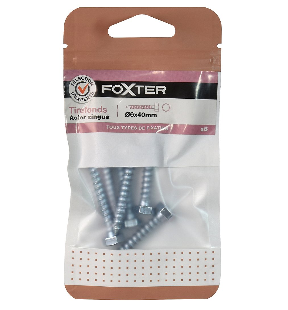 | Libellé | Tirefonds acier zingué 6x40mm x6 - Sélection d'Experts - FOXTER |