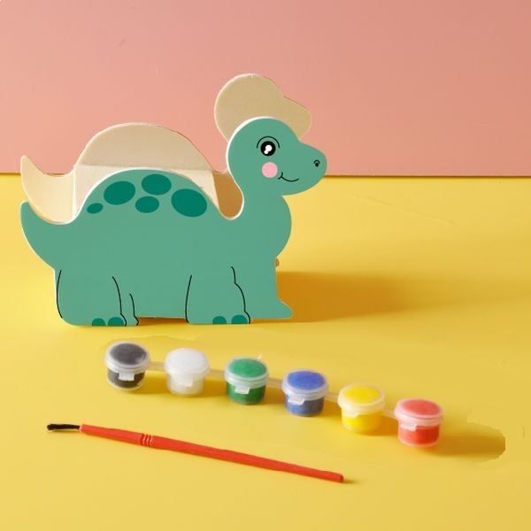 Tirelire bois dinosaure à peindre avec 6 pots de peinture et pinceau