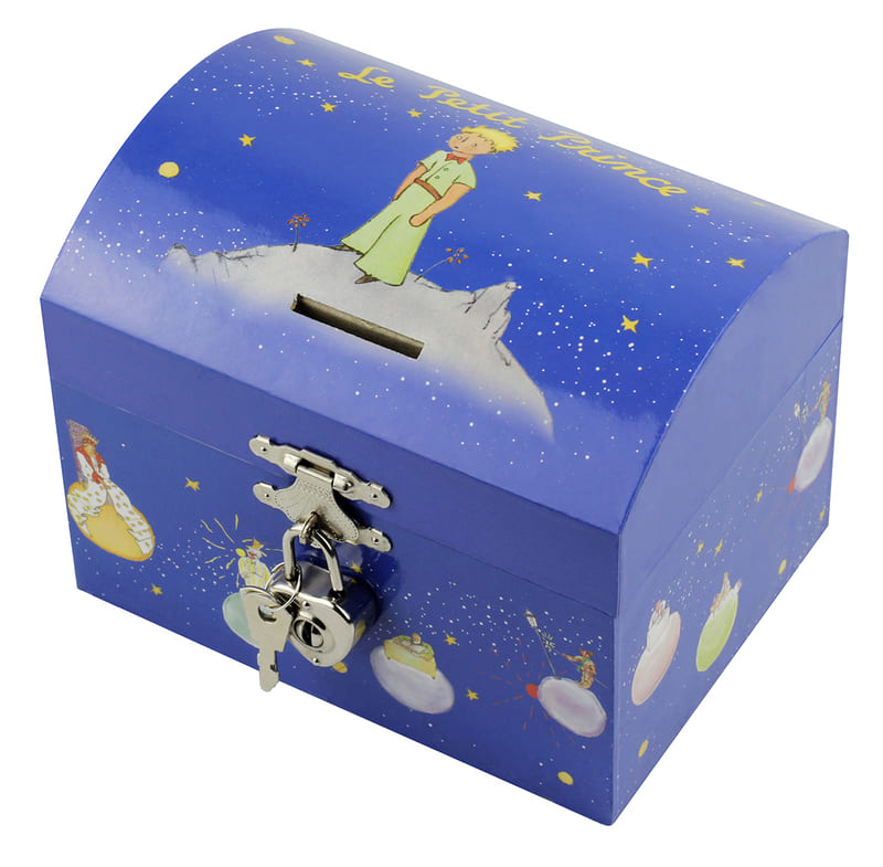 Tirelire musicale Le Petit Prince En carton épais Cadenas et clefs Dim : 13.5 x 10.5 x 10 cm Musique Le Printemps de Vivaldi