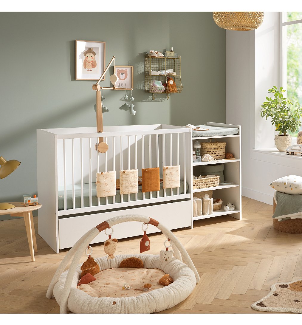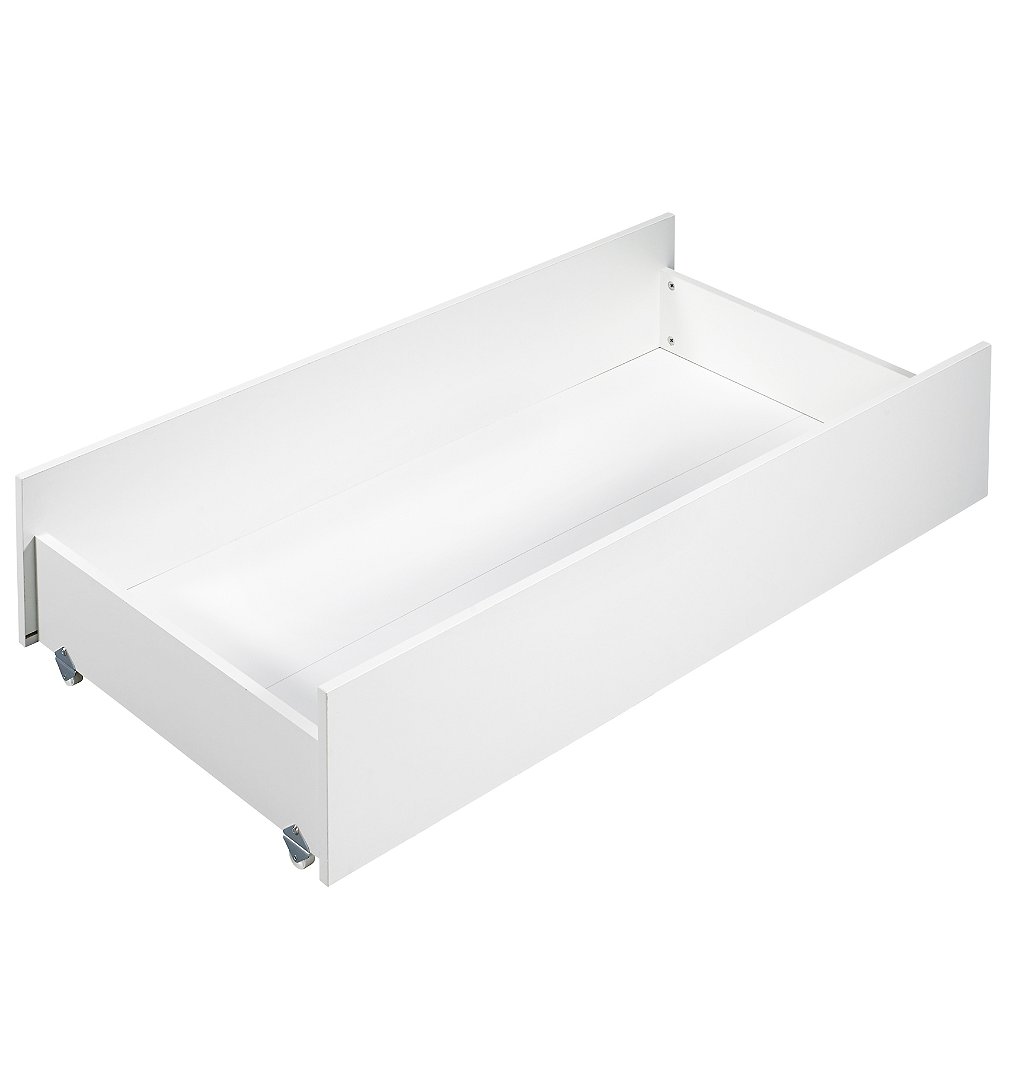 Explorez de nouveaux horizons de praticité avec notre tiroir de lit ingénieux, la touche parfaite pour compléter votre lit bébé combiné évolutif de la collection First. Conçu avec la même attention aux détails et l'esthétique moderne qui caractérisent notre collection, ce tiroir de lit est l'allié idéal pour maximiser l'espace et simplifier votre quotidien de parent. Glissez-le en douceur sous le lit bébé combiné évolutif de la collection First, et découvrez un espace de rangement supplémentaire qui s'intègre parfaitement à l'ensemble. Fabriqué avec des matériaux de qualité, le tiroir de lit offre une solution discrète pour ranger les petits trésors de votre tout-petit, que ce soit des jouets, des draps supplémentaires ou d'autres essentiels. Bienvenue dans l'univers de l'efficacité sans compromis sur le style. Livré en kit, à monter soi-même. COMPOSITION: Dimensions Intérieures: L = 111cm ; H= 13cm ; P= 59cm Faces avant et arrière, et côtés en panneaux de particules mélaminés décor blanc, chants décor blanc. Fond en panneaux de fibres dures, 1 face décor blanc. Sur roulettes unidirectionnelles. DIMENSIONS: 118 x 28 x 63 cm NORMES ET QUALITE: Meuble à monter soi-même CONSEILS D'ENTRETIEN: Dépoussiérage chiffon sec : ni alcool, ni solvant.Taches rebelles : éponge légèrement humide.