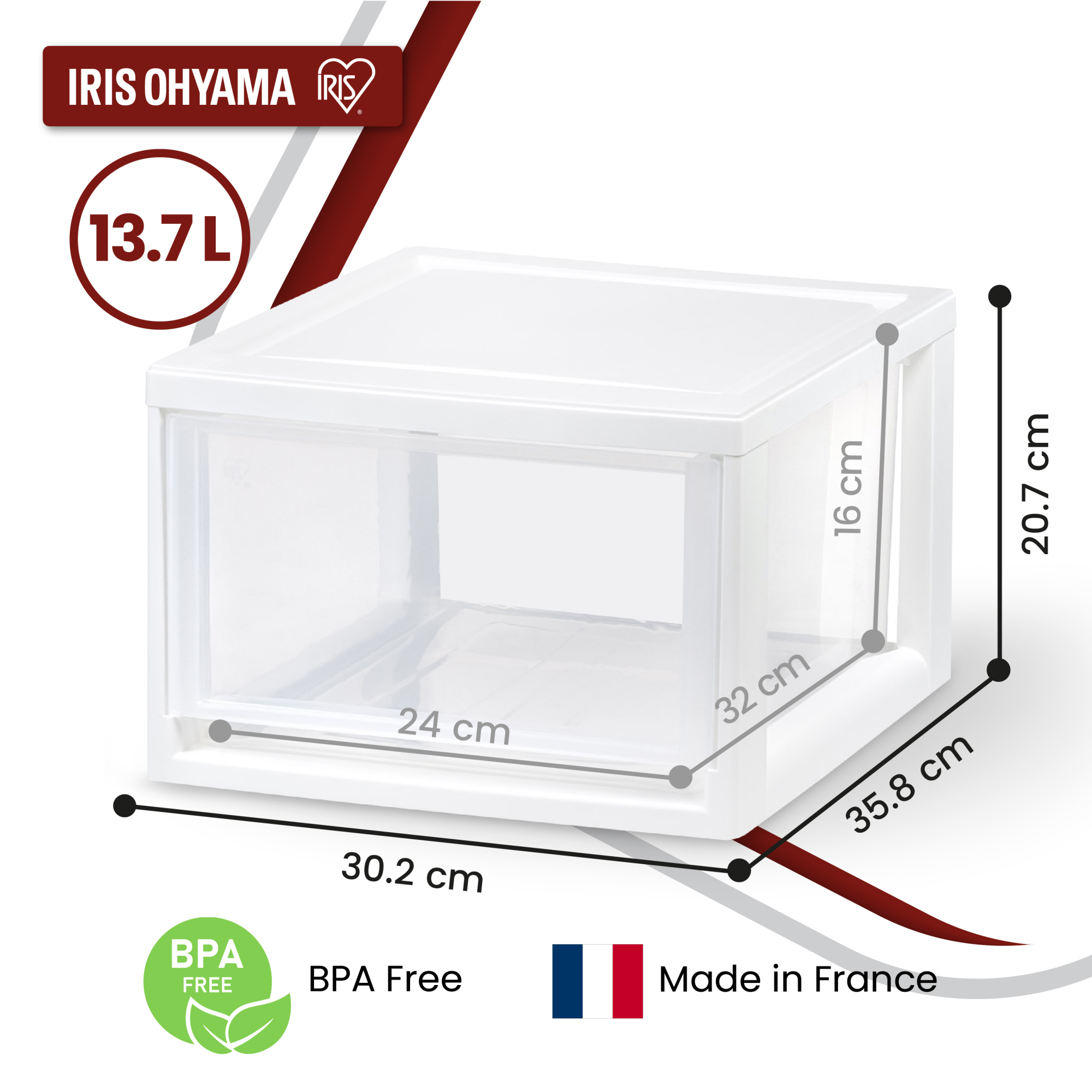FABRIQUÉ EN FRANCE - Les tiroirs empilables en plastique Iris Ohyama offrent une solution de rangement pratique pour n'importe quelle pièce de votre maison. Gardez les petites choses similaires ensemble ou utilisez-les pour ranger des articles fréquemment utilisés et réapprovisionnés tels que des collations, des vitamines et des médicaments, de la papeterie, des fournitures d'artisanat, etc. ORGANISATEUR PARFAIT - Utilisez le tiroir coulissant pour mettre de l'ordre dans votre placard, votre salle de bain, votre salle de bricolage ou n'importe quel endroit nécessitant une organisation. Le tiroir permet un accès facile aux articles stockés dans la cuisine, aide à créer une solution de rangement pour votre salle de bricolage, ou utilisez-le dans une chambre d'enfant pour ranger tout ce dont vous avez besoin. MULTIFONCTIONNEL - Gardez vos articles fréquemment utilisés à portée de main en les rangeant dans le tiroir empilable en plastique Iris Ohyama. Le matériau transparent du tiroir permet de vérifier facilement ce qu'il y a à l'intérieur, tandis que le cadre corail offre une certaine intimité et facilite le stockage des articles d'une manière qui ne soit pas gênante. EMPILABLE - La conception empilable vous permet de créer votre propre solution de stockage unique, soit en empilant plusieurs pour créer votre propre armoire de rangement de table, soit en les répartissant dans toutes les pièces qui nécessitent plus d'espace de stockage. Le choix vous appartient. GRANDE TAILLE - Dimensions : L 35,8 x P 30,2 x H 20,7 cm (intérieur : L 31,5 x l 23,6 x H 16,3 cm)