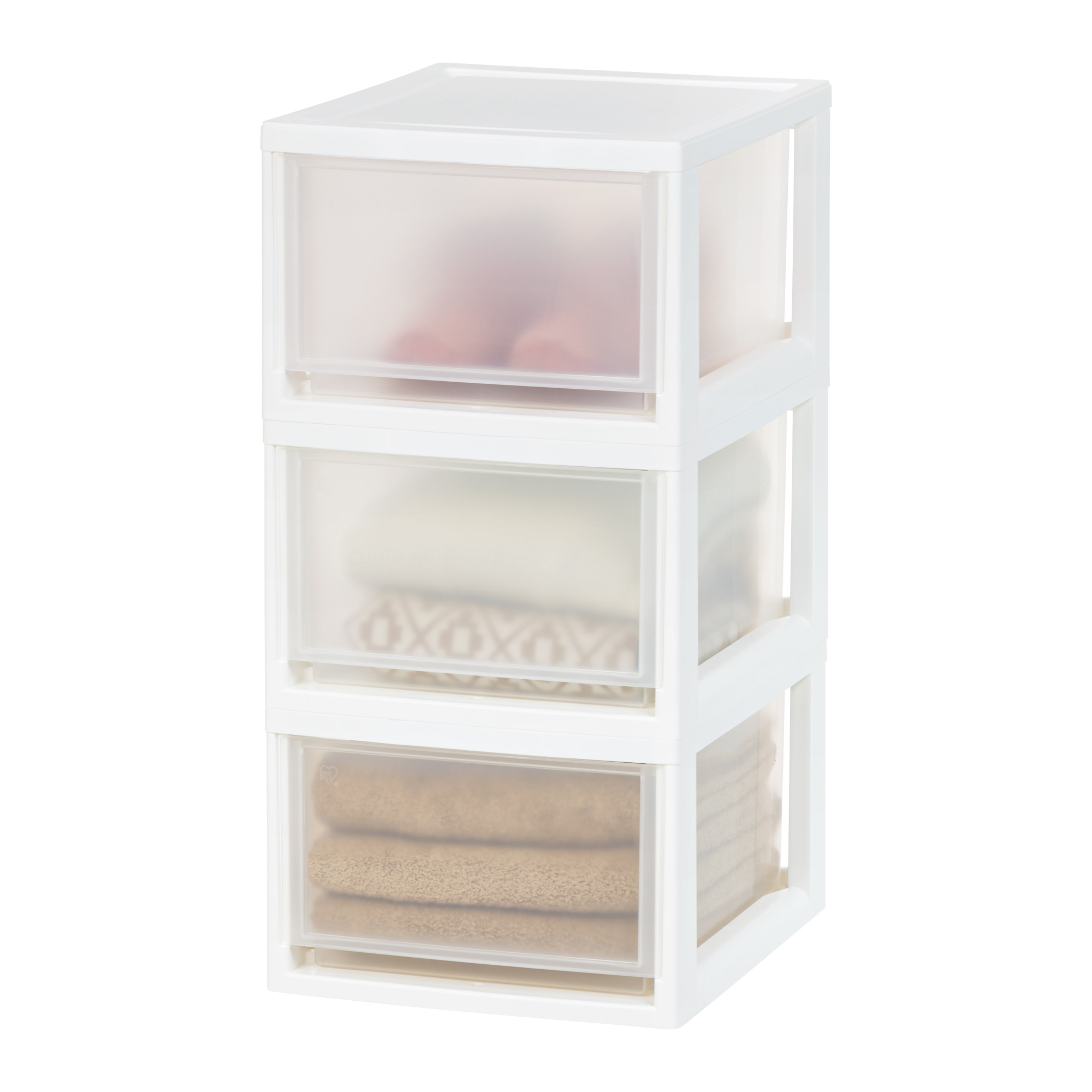 Tiroir de Rangement, 13.7 L, Lot de 3, Blanc, Empilable, Transparent