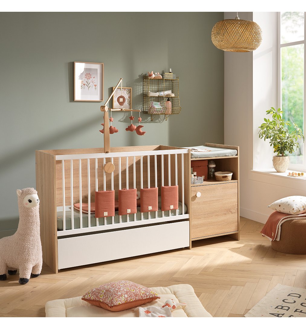 Explorez de nouveaux horizons de praticité avec notre tiroir de lit ingénieux, la touche parfaite pour compléter votre lit bébé combiné évolutif de la collection UP. Conçu avec la même attention aux détails et l'esthétique moderne qui caractérisent notre collection, ce tiroir de lit est l'allié idéal pour maximiser l'espace et simplifier votre quotidien de parent. Glissez-le en douceur sous le lit bébé combiné évolutif de la collection UP, et découvrez un espace de rangement supplémentaire qui s'intègre parfaitement à l'ensemble. Fabriqué avec des matériaux de qualité, le tiroir de lit offre une solution discrète pour ranger les petits trésors de votre tout-petit, que ce soit des jouets, des draps supplémentaires ou d'autres essentiels. Bienvenue dans l'univers de l'efficacité sans compromis sur le style. Livré en kit, à monter soi-même. COMPOSITION: Dimensions Intérieures: L = 111cm ; H= 13cm ; P= 59cm Faces avant et arrière, et côtés en panneaux de particules mélaminés décor blanc, chants décor blanc. Fond en panneaux de fibres dures, 1 face décor blanc. Sur roulettes unidirectionnelles. DIMENSIONS: 118 x 28 x 63 cm NORMES ET QUALITE: Meuble à monter soi-même CONSEILS D'ENTRETIEN: En cas de tâches accidentelles, utiliser un linge propre. Ne pas frotter.