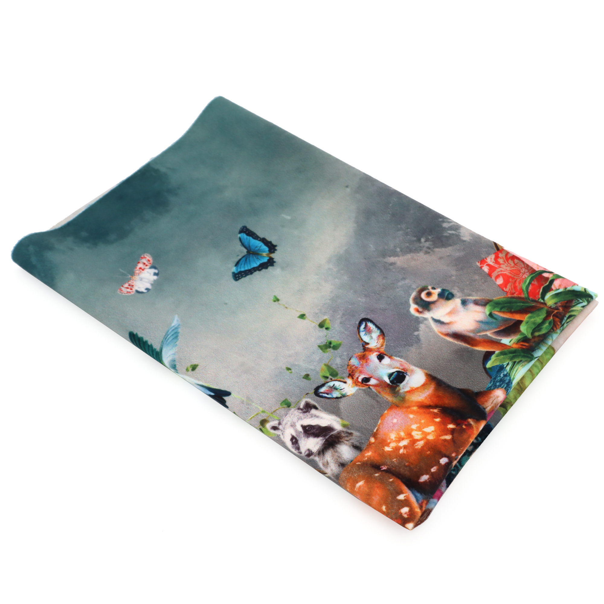 | Plus produit | Carré tissu velours en 100% polyester 47x47 cm collection WONDERLAND Multicolore Tissu carré velours avec un motif animaux fantastique. |