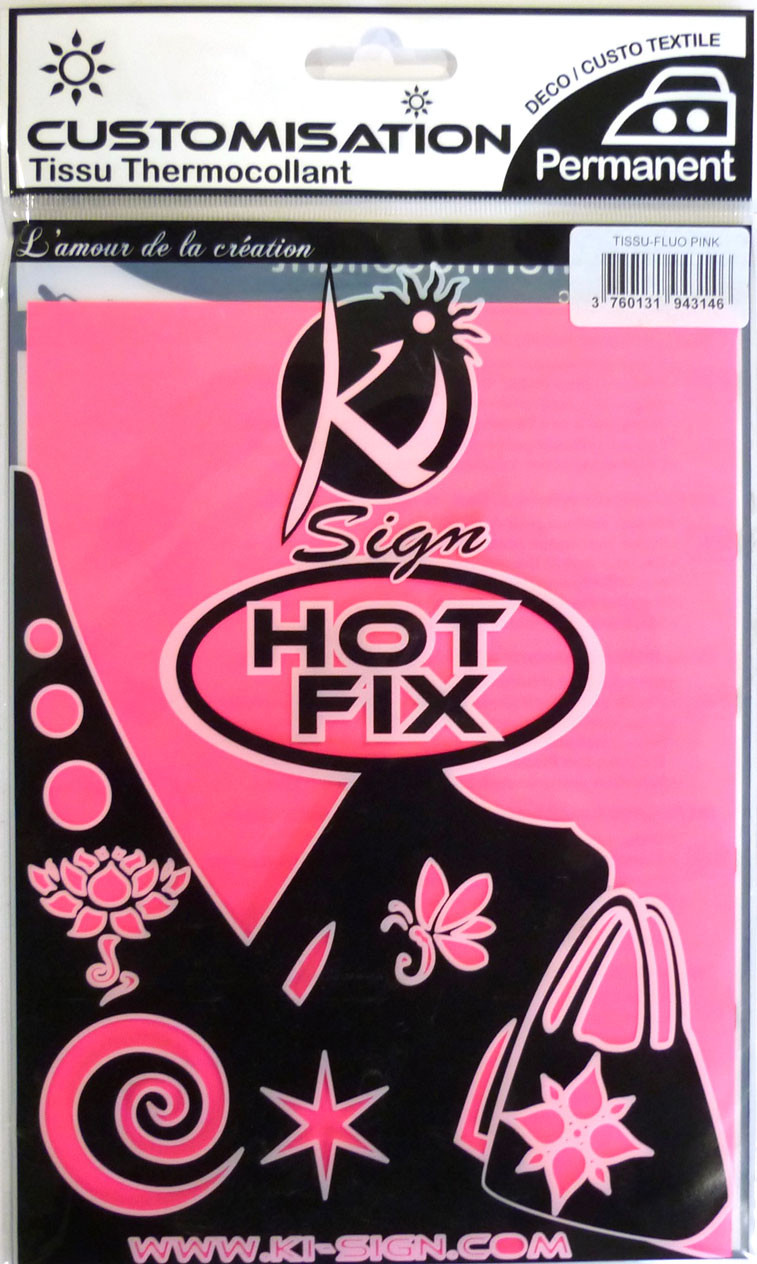 Libellé Tissu thermocollant Fluo Rose