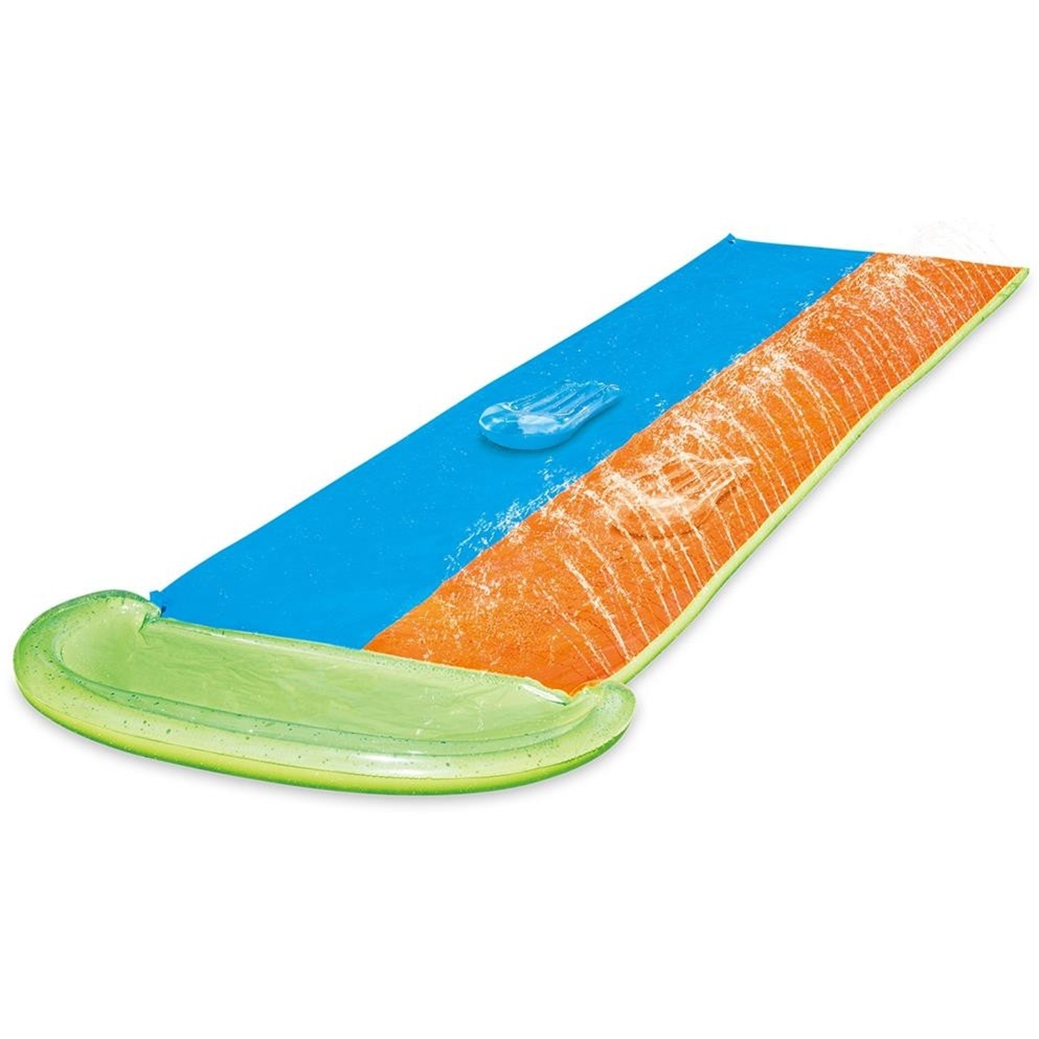 Summer Waves KD0203000 Toboggan aquatique 2 personnes 549 x 145 cm - - Avec ce toboggan aquatique, vous pouvez créer un paradis aquatique dans votre propre jardin. Il suffit de dérouler le toboggan de 549 cm de long dans un endroit approprié. Fixez-le ensuite et remplissez-le d'eau à l'aide du tuyau d'arrosage. Dès que l'eau des arroseurs sur les côtés coule sur le toboggan, il est temps de glisser. Le toboggan offre de l'espace pour deux personnes. - - - Longueur : 549 cm - Personnes : deux - Matériau : plastique - Couleur : Vert / Orange / Bleu