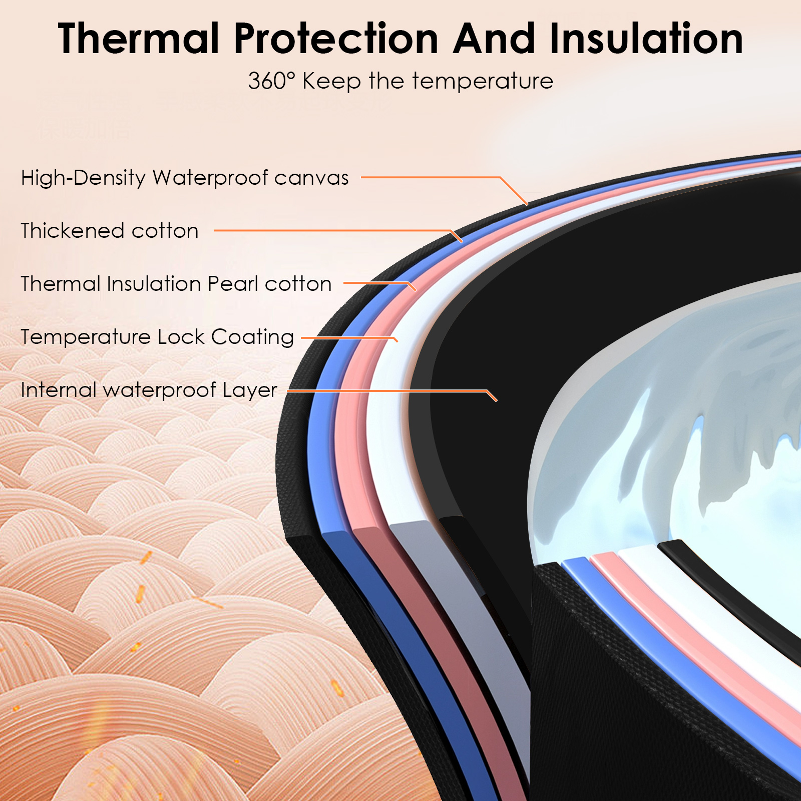 La baignoire pliante a un grand effet isolant. Elle est fabriquée avec des matériaux de haute qualité qui peuvent maintenir la température de l'eau stable pendant une longue période.La couche extérieure est durable et imperméable, la couche intérieure est douce et respectueuse de la peau,et la couche super-isolée peut conserver jusqu'à 85% de la température pendant trois heures. Vous pouvez profiter d'un bain chaud et relaxant,vous sentir rafraîchi et rajeuni après.