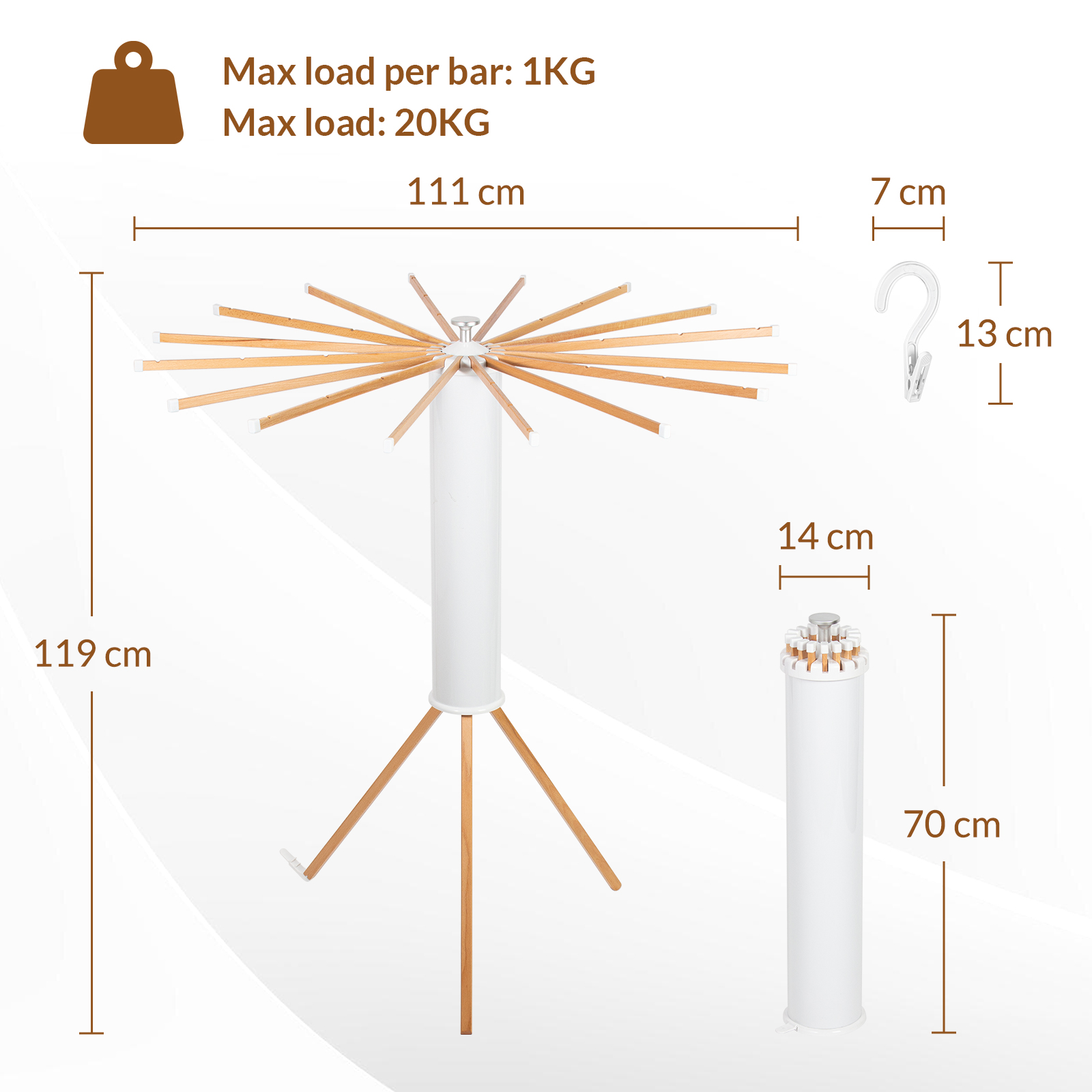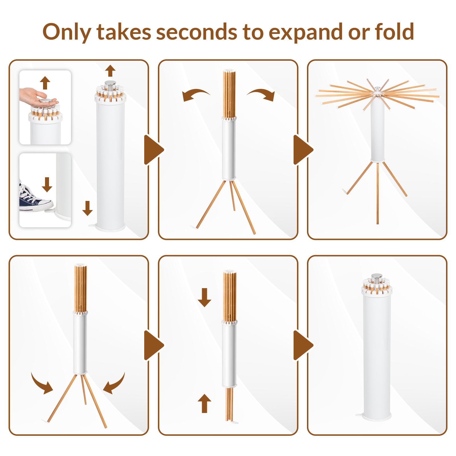 Todeco Etendoir linge interieur avec 10 Pinces à Linge, Séchoir à Rayons en éventail en bois, Séchoir à l