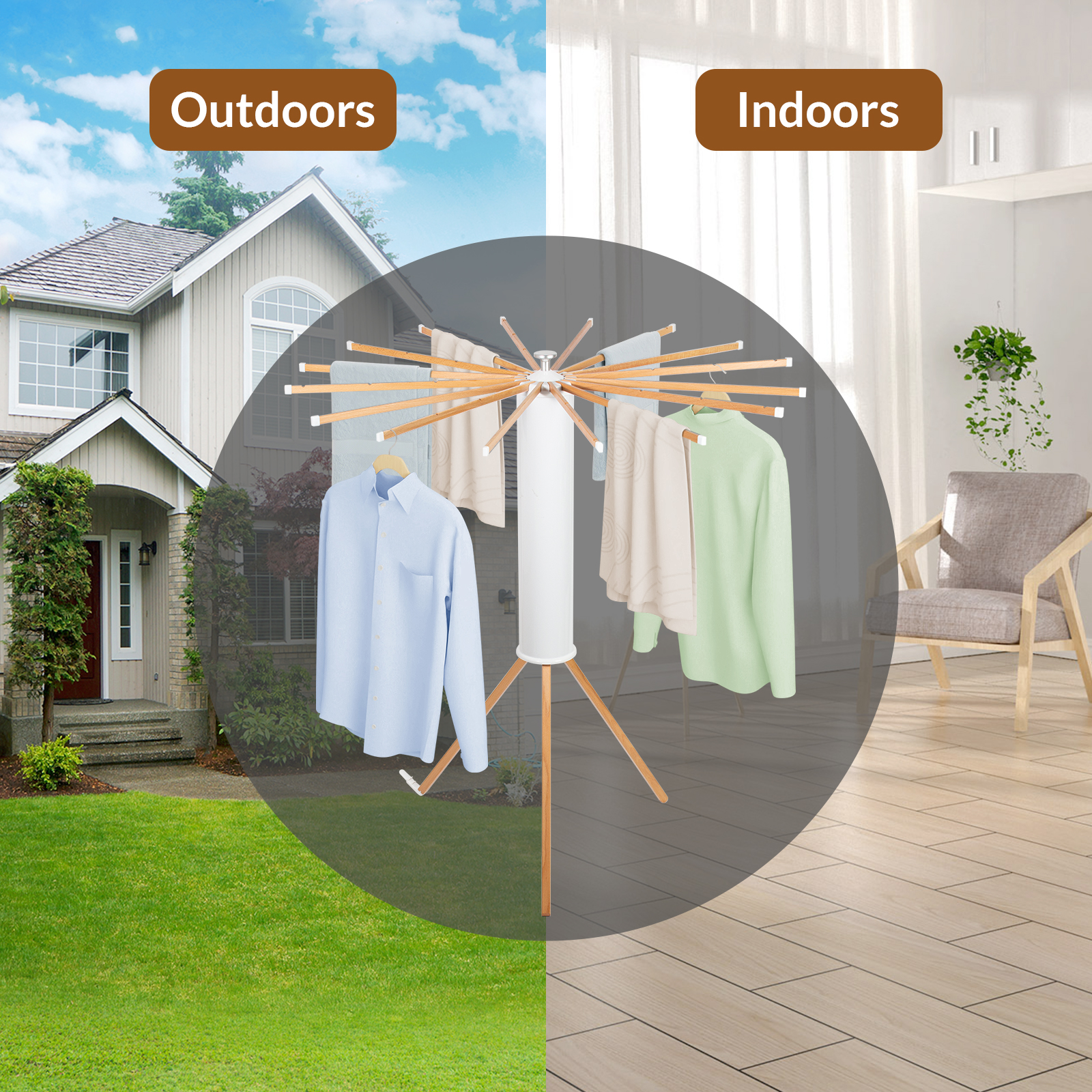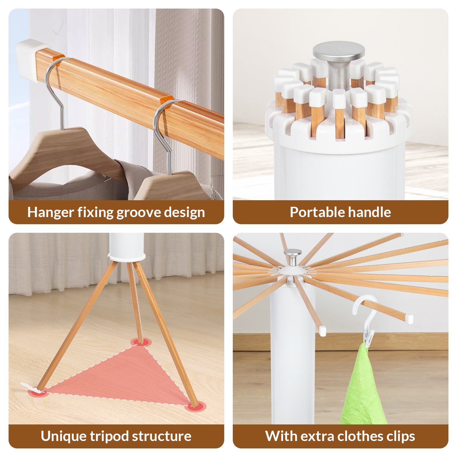 Structure de trépied unique : l'étendoir à vêtements dispose d'une structure de trépied unique, alliant stabilité et fonctionnalité. Et le design en bois Matrial améliore non seulement la stabilité globale du support, mais contribue également à son attrait esthétique, ce qui en fait un ajout élégant à tout espace buanderie.