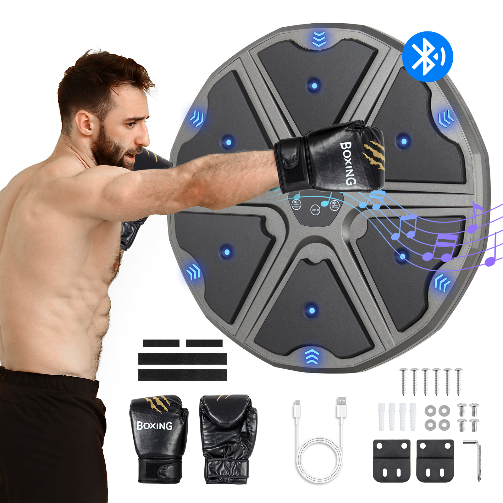Todeco Machine de Boxe Musicale Adulte et Enfant avec Gants, 9 Modes de Vitesse Cible Boxe Mural Musique