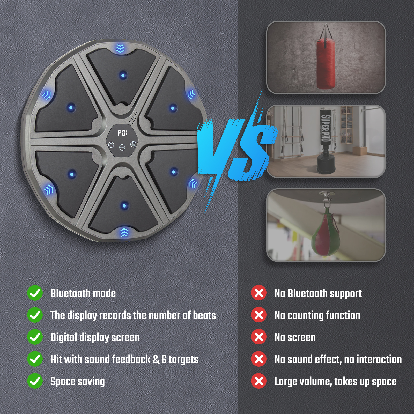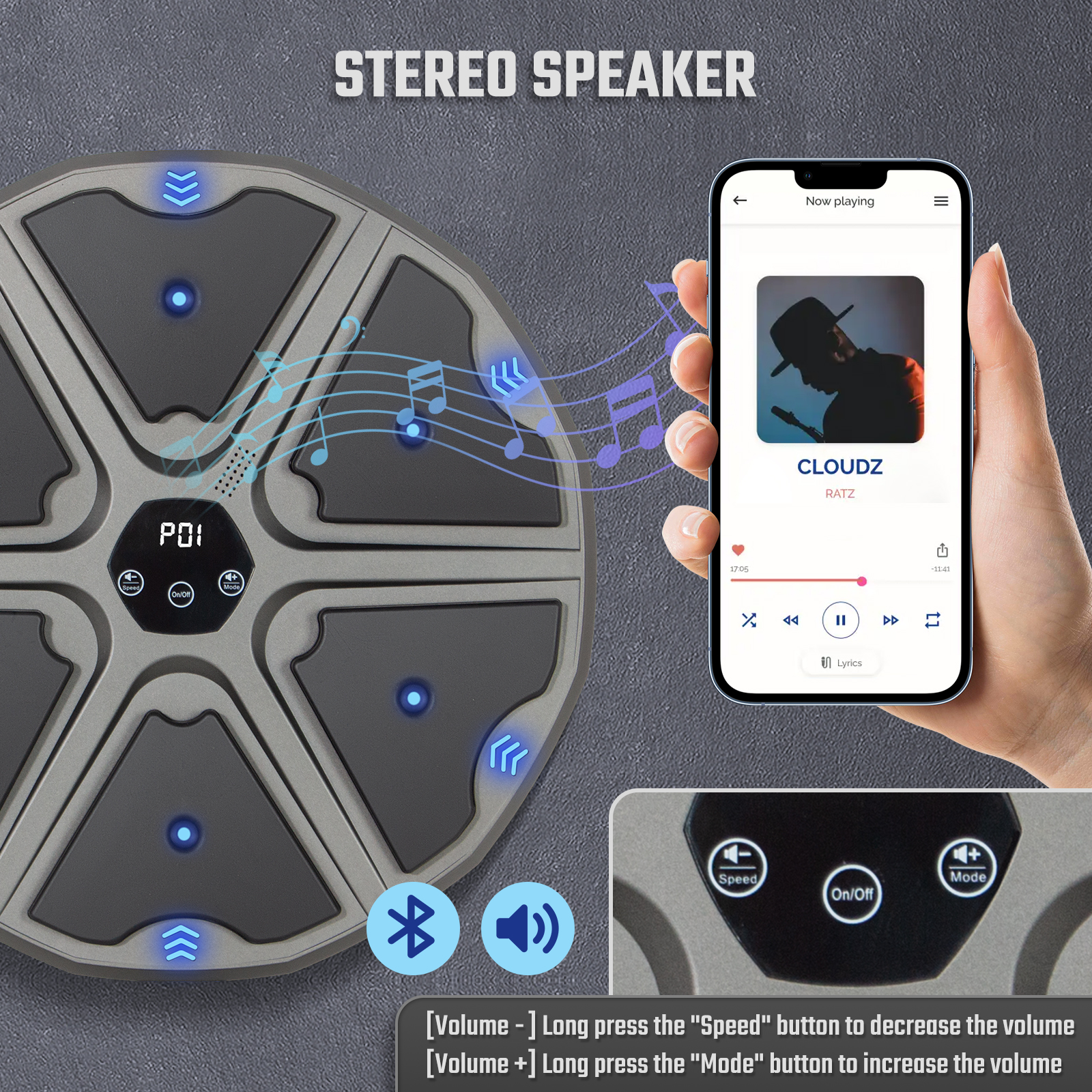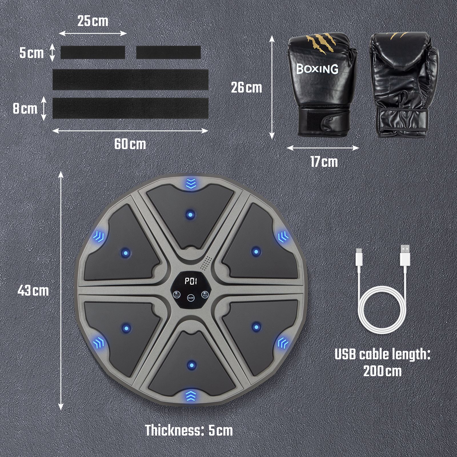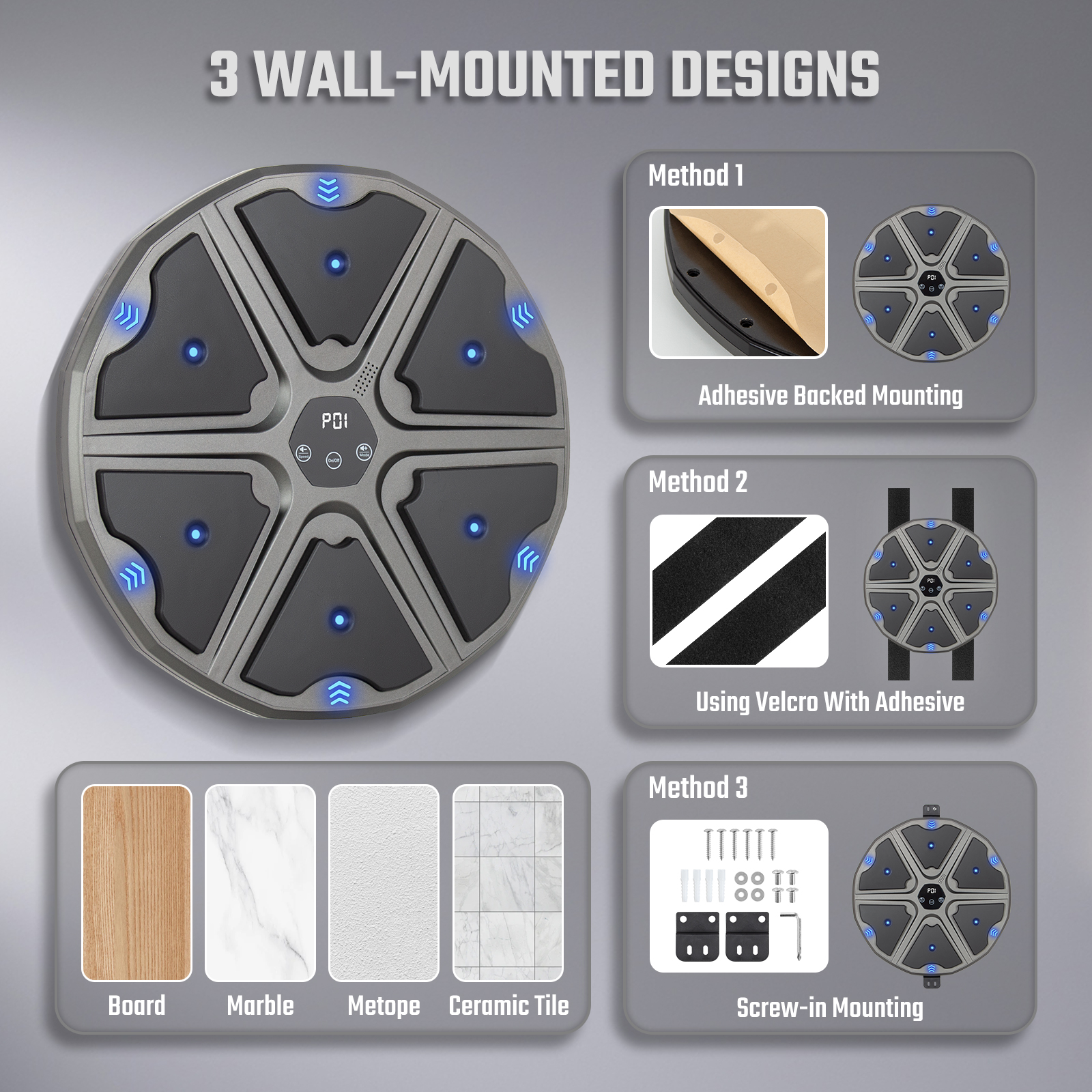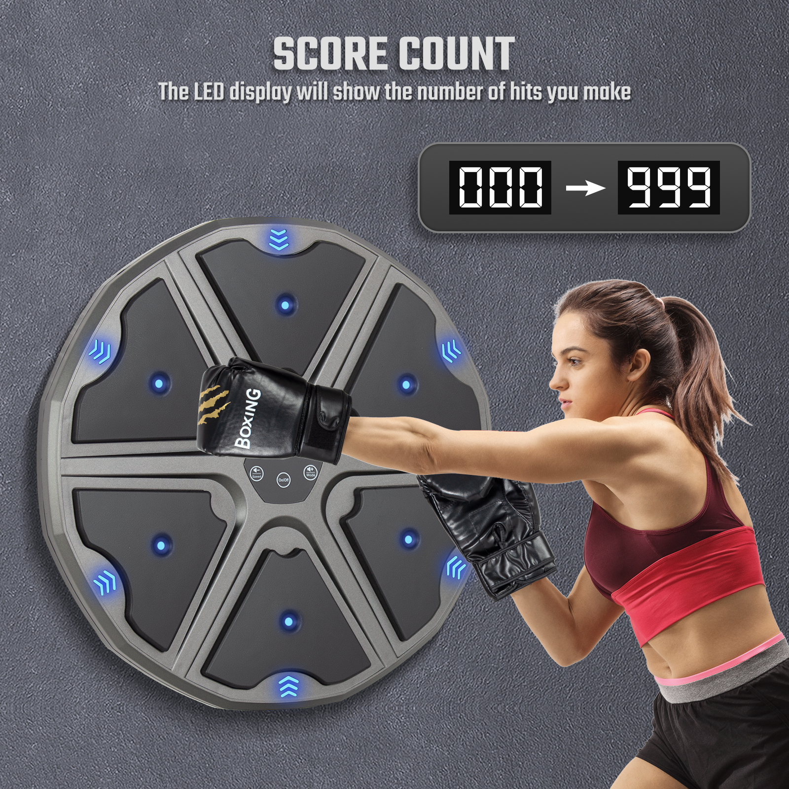 【Machine de Boxe Musicale Améliorée】La puce intelligente améliorée augmente la sensibilité du coussin de frappe, offrant une gamme de volume plus large et un son plus clair. Elle améliore la vitesse de réaction et la coordination corporelle. Lorsque la cible s'allume et que vous la frappez, elle compte automatiquement. Idéale pour l'entraînement professionnel et l'exercice quotidien, adaptée aux boxeurs, amateurs de fitness, adultes et enfants. 【9 Modes & 9 Vitesses】Notre machine de boxe musicale est équipée de 9 modes de frappe réglables et de 9 vitesses de frappe, offrant une expérience d'entraînement variée et excitante, et améliorant pleinement votre vitesse de réaction et votre coordination corporelle. De plus, notre machine de boxe musicale comptera le nombre de fois que vous frappez correctement la machine, jusqu'à un maximum de 999 fois. 【Machine de Boxe Musicale Bluetooth】La machine de boxe intelligente prend en charge la connectivité Bluetooth, et la fonction Bluetooth reste en veille pendant de longues périodes. En utilisant le Bluetooth, vous pouvez facilement connecter aux haut-parleurs de la machine et jouer votre musique préférée pendant votre entraînement. Avec des haut-parleurs intégrés de haute qualité et la technologie sans fil Bluetooth, vous pouvez vous immerger dans un entraînement exaltant. 【Robuste et Durable】La machine de boxe musicale est fabriquée en mousse haute performance, assurant un effet de rebond et d'absorption des chocs qui protège entièrement les mains des utilisateurs. Les autres composants sont construits avec un matériau PU robuste et durable. Par ailleurs, la configuration à trois couches d'absorption des chocs résiste aux entraînements intenses, offrant une protection complète. 【Installation Facile】La machine de boxe musicale est montée au mur, utilisant du ruban adhésif double face et du Velcro pour se fixer sur divers types de murs, économisant de l'espace. Il n'est pas nécessaire de percer des trous dans le mur. Vous pouvez ajuster la hauteur selon vos préférences personnelles, vous permettant de vous entraîner à la maison à tout moment sans avoir besoin d'aller à la salle de sport.