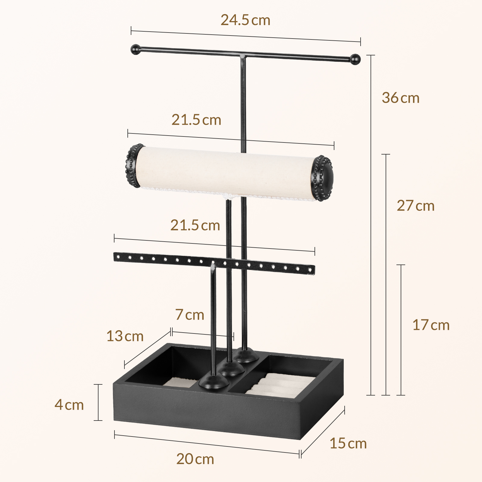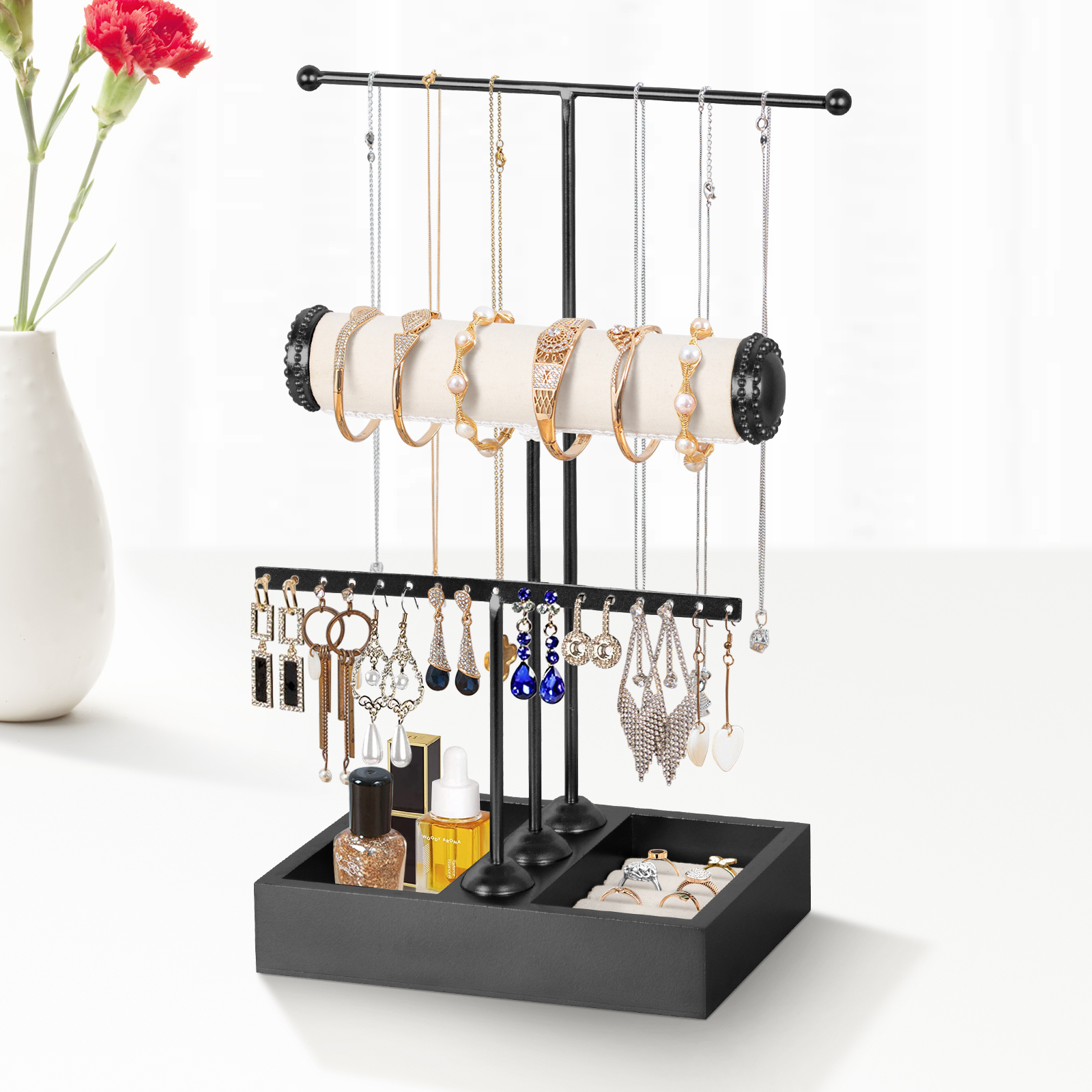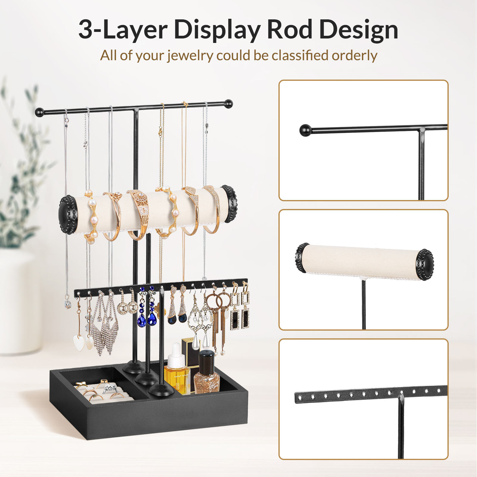 Todeco Porte Bijoux Présentoir à Bijoux,Arbre à Bijoux à 3 Niveaux Support Avec Plateau Pour Colliers,Bag