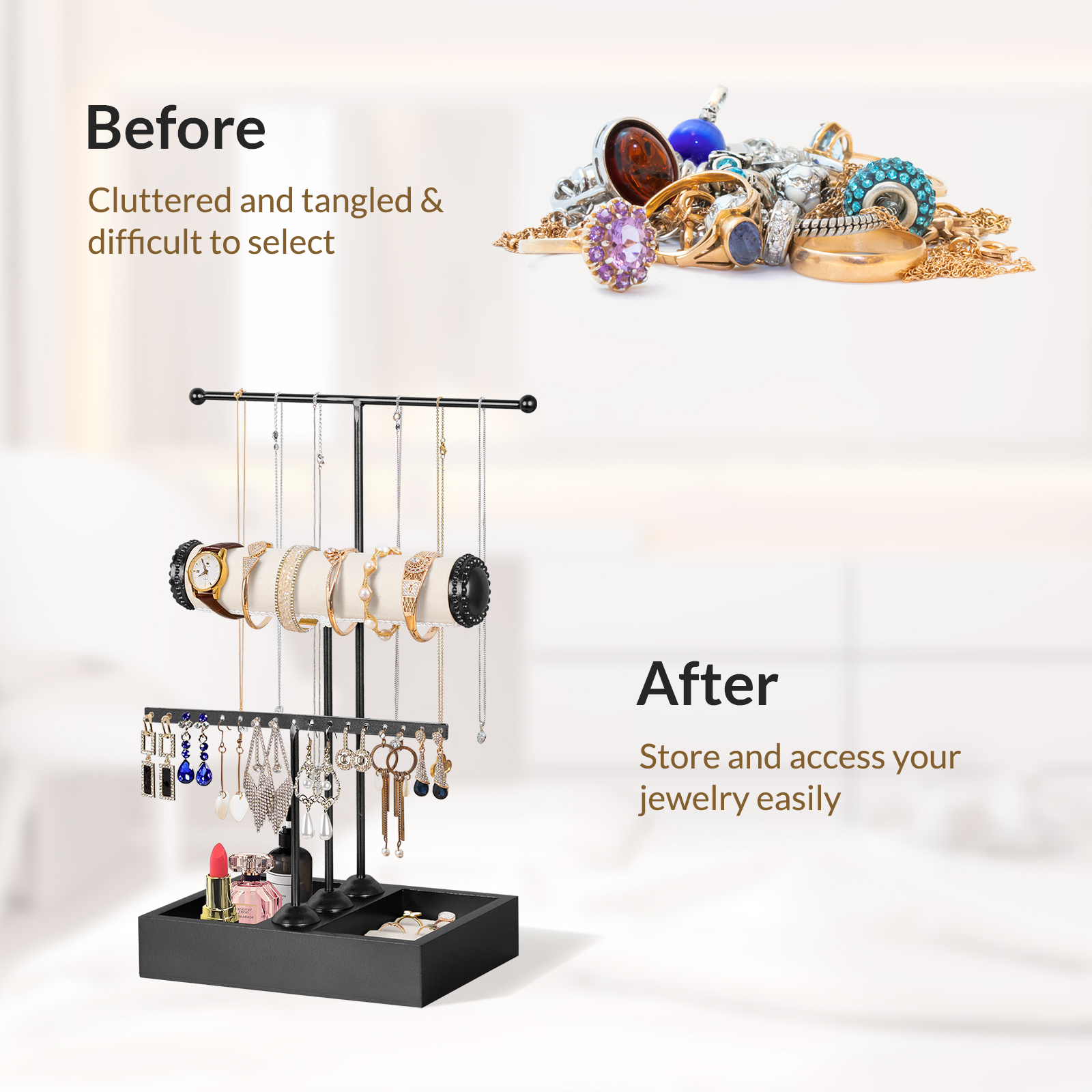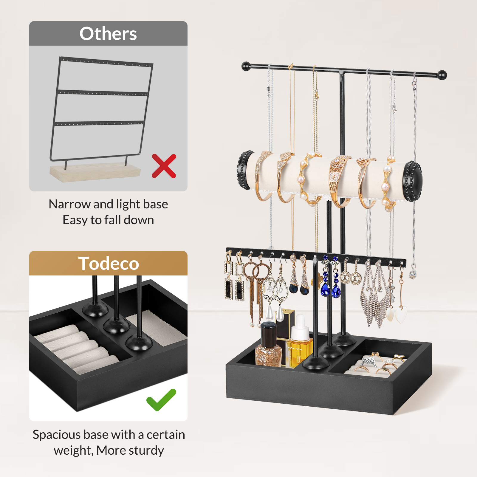 Gardez vos bijoux organisés - Le porte-bijoux Todeco est un organisateur parfait pour vos bijoux. Il peut contenir toutes sortes de boucles d'oreilles, colliers, bracelets, bagues, montres, etc. Vous pouvez également placer de petits objets comme du rouge à lèvres, du parfum, des bagues et des épingles à cheveux sur le plateau inférieur. Il est facile de voir toutes les pièces et d'attraper celle dont vous avez besoin, plutôt que de les empiler dans une boîte à bijoux.