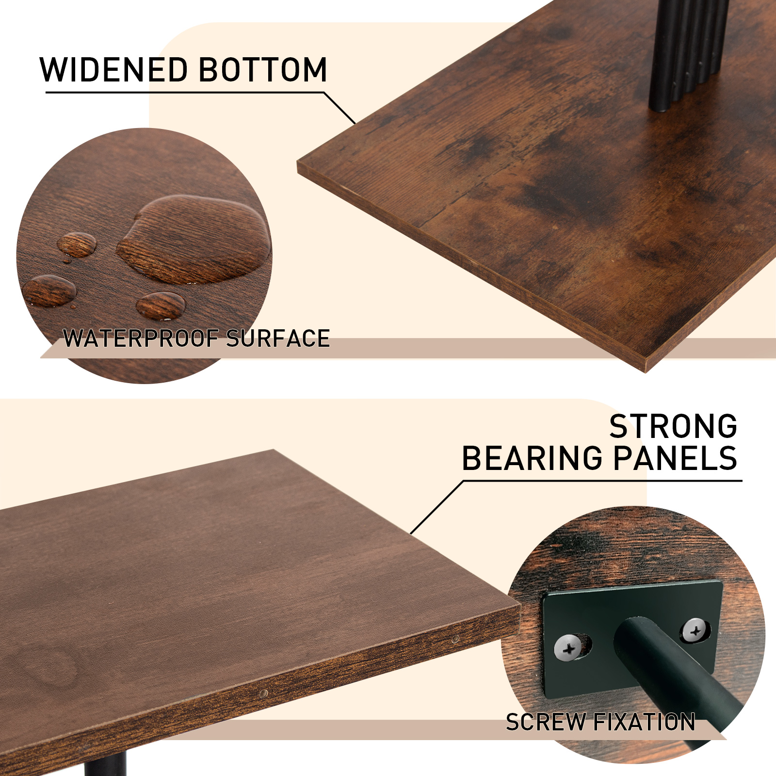 Construction Robuste et Durable: Fabriqué à partir de panneaux MDF épaissis et de fer renforcé, ce support pour plantes d'intérieur garantit une excellente stabilité et capacité de charge. Résistant aux fissures et aux déformations, il assure une longue durée de vie, même en environnement humide ou exposé à la lumière directe.