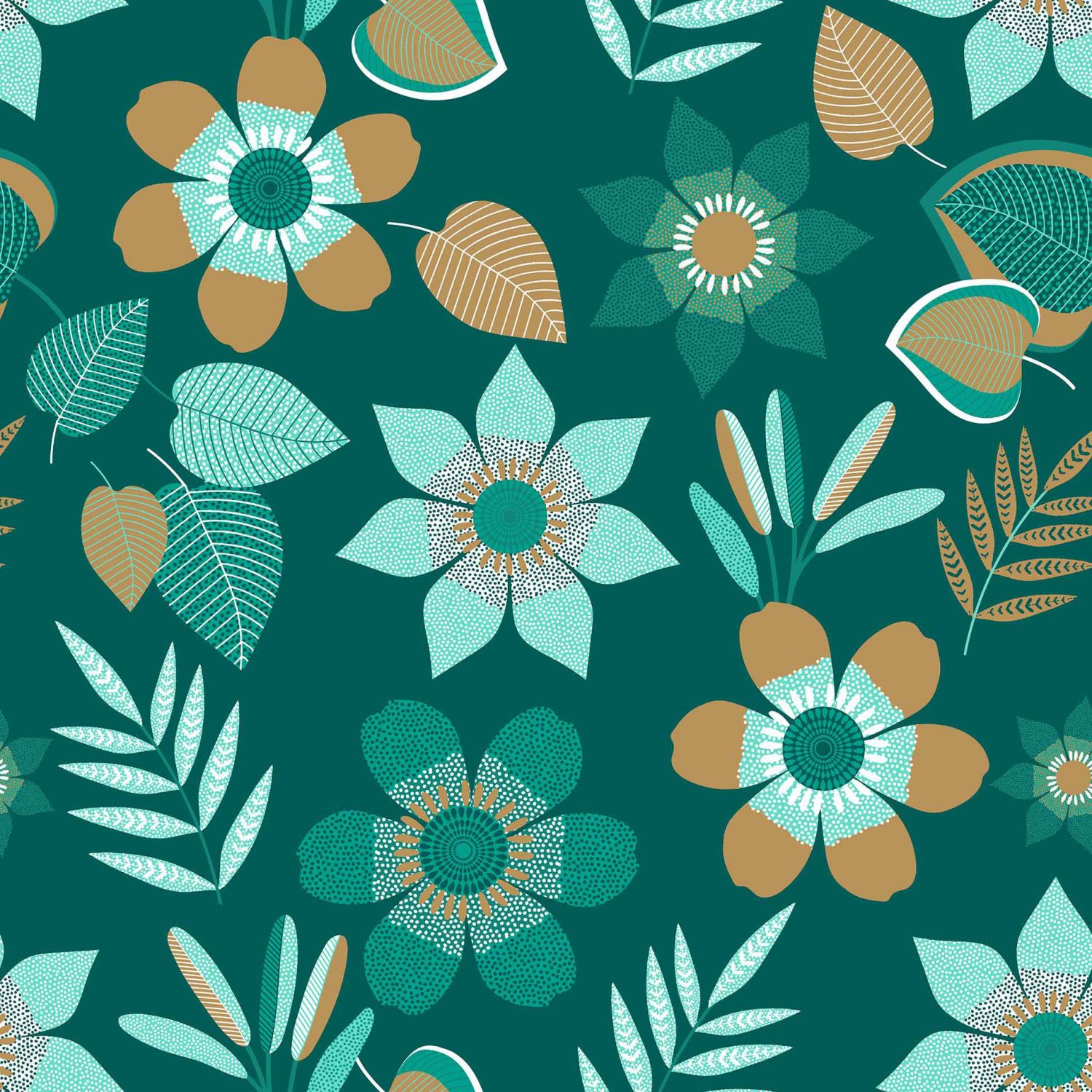 Toile cirée vendue au mètre, motifs feuilles et fleurs