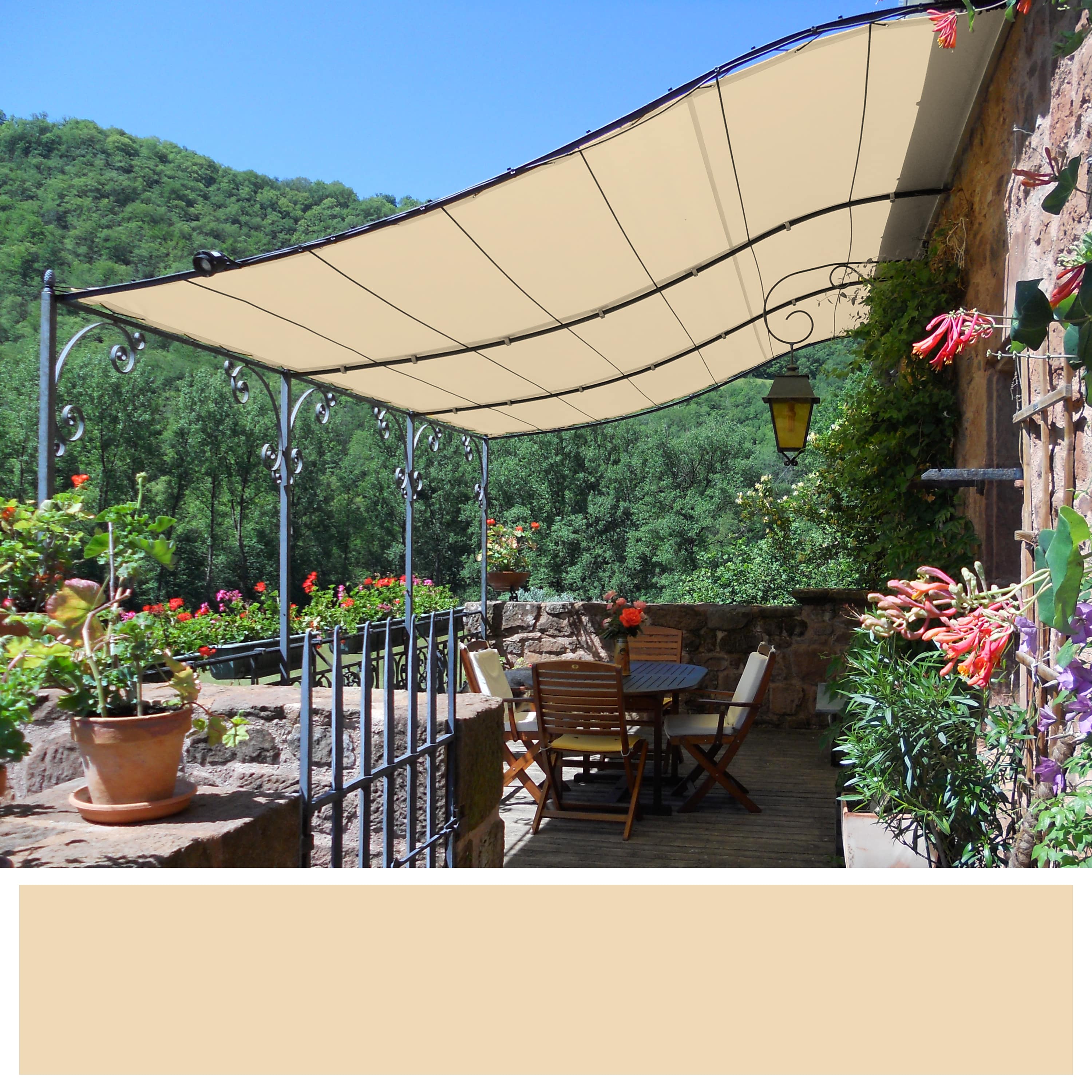 Libellé Toile d'ombrage pergola (type bâche) 5 x 2,5 m en tissu PVC étanche 640 g/m² coloris Ivoire - Imperméable, anti-uv et très résistante