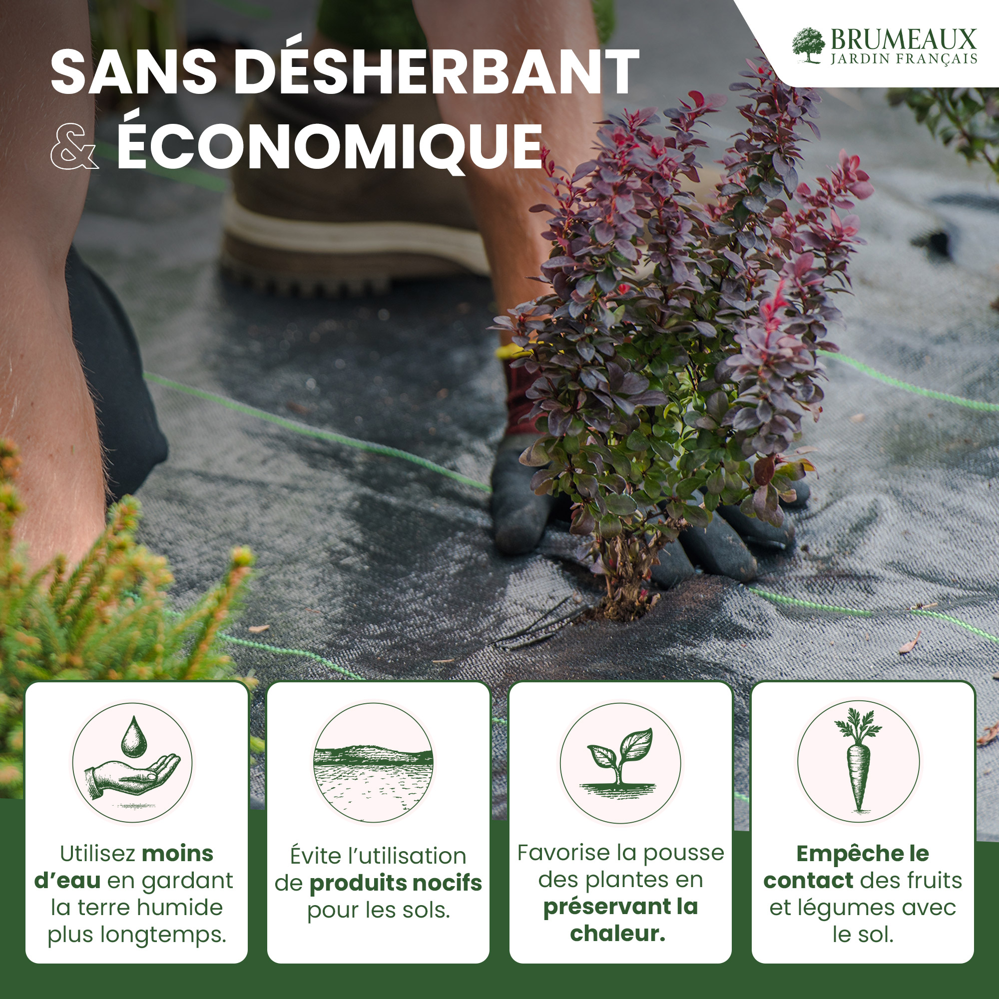 Toile de paillage 100g/m² : Convient au jardin potager, ne crains pas les paillis d'écorces et les graviers