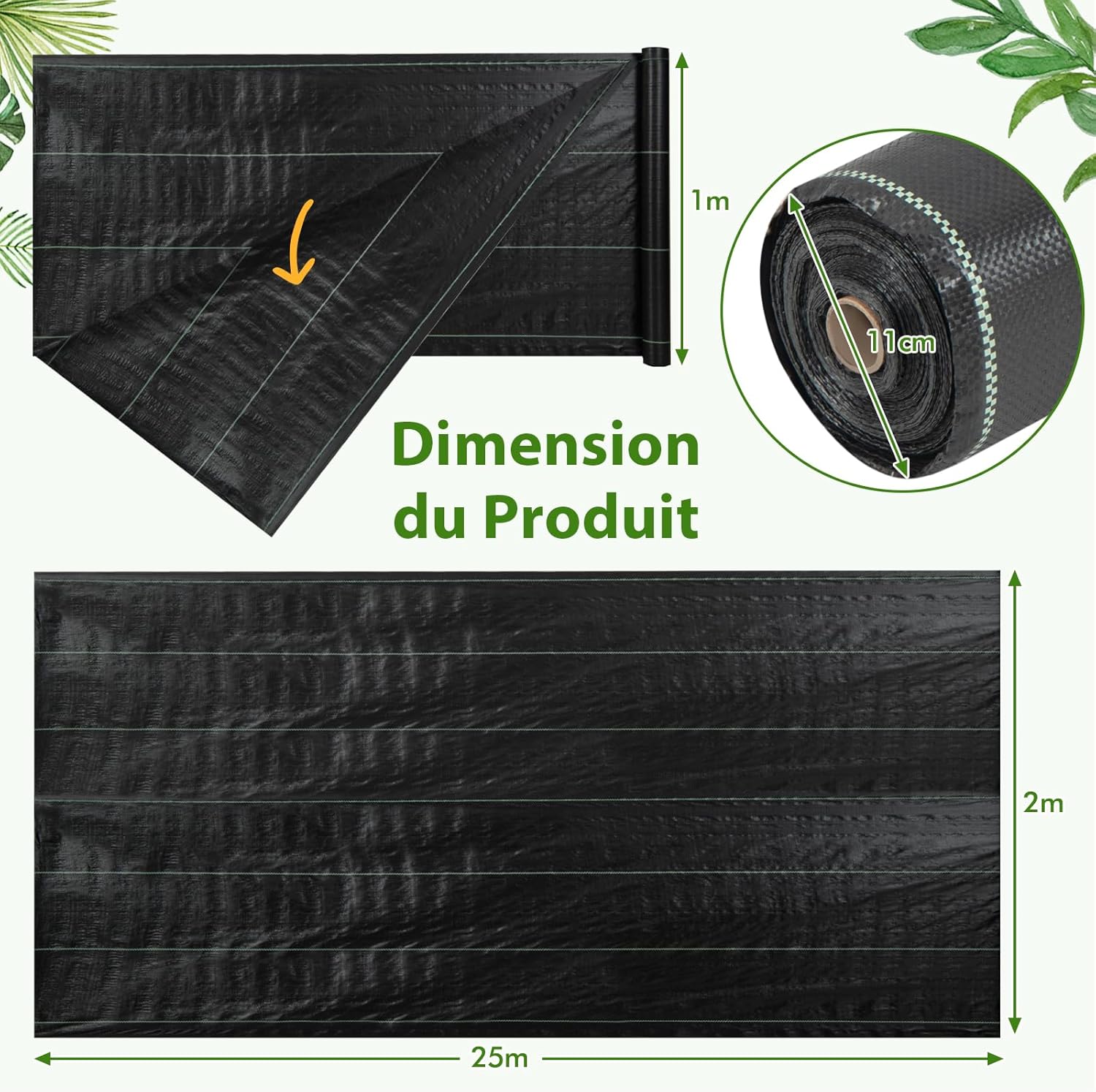 | Libellé | Toile de paillage contre les mauvais herbes 50 m², tissu de lutte contre les mauvaises herbes en pp |