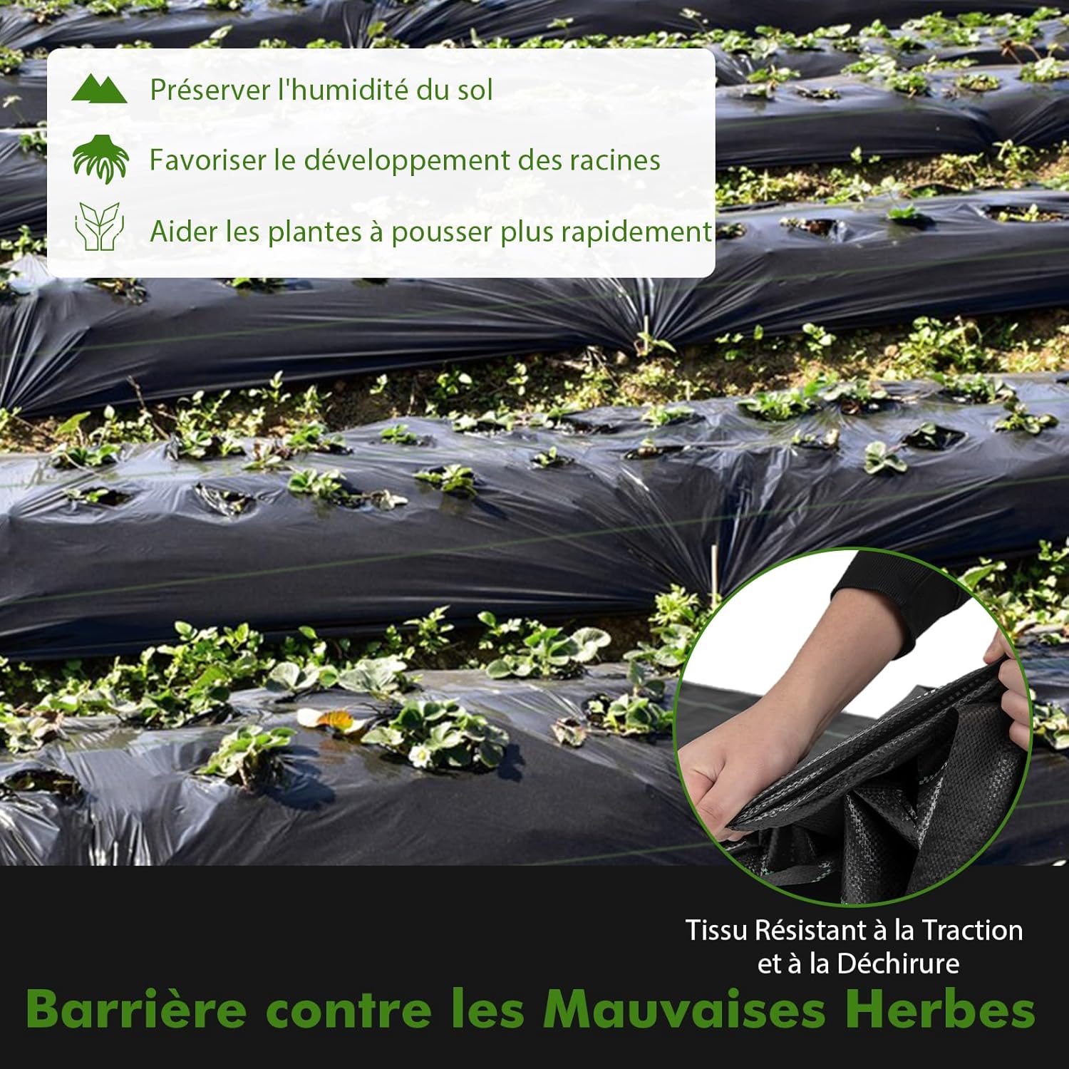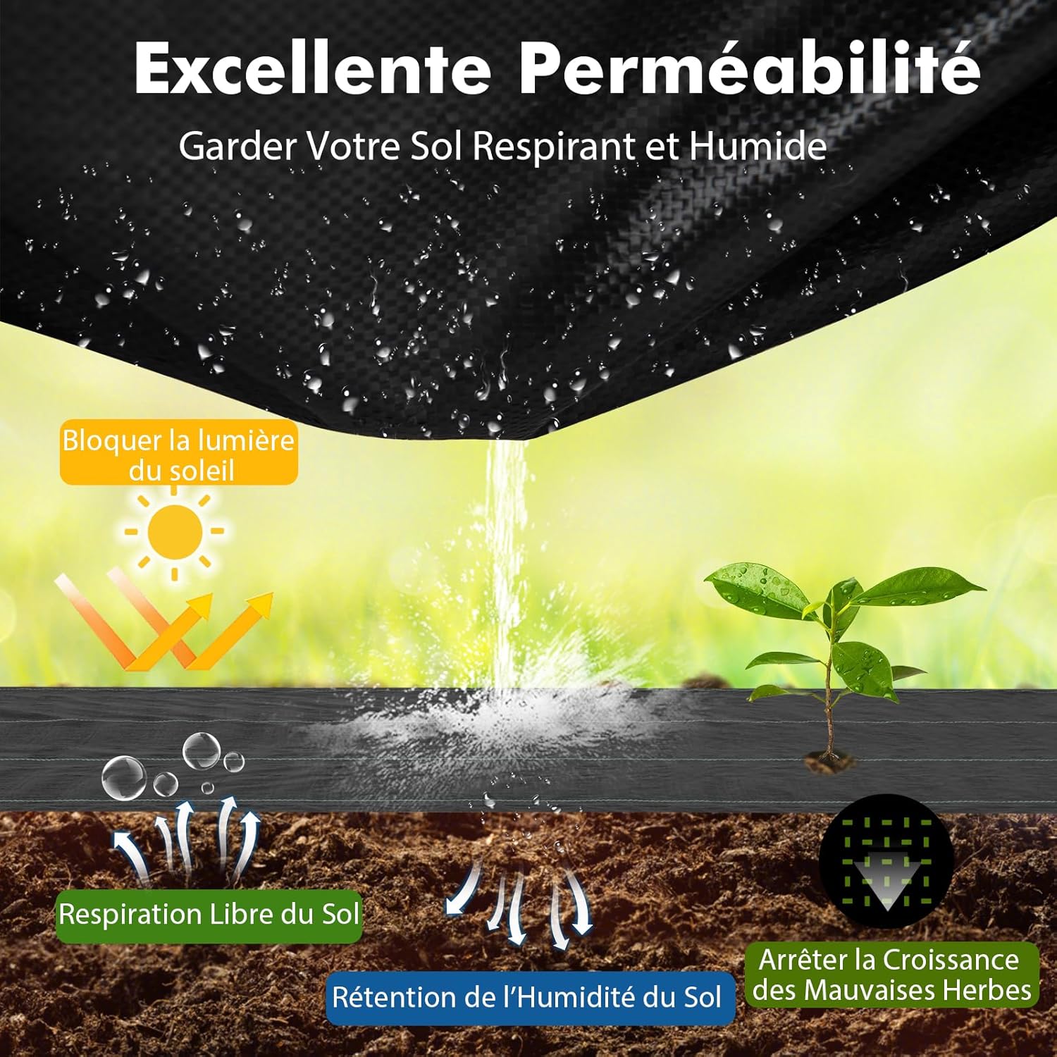 - Contrôle intelligent des mauvaises herbes : Cette toile de jardin de 50 m² est savamment conçue avec une perméabilité supérieure, garantissant que l'eau et les nutriments atteignent votre sol tout en bloquant efficacement les mauvaises herbes.