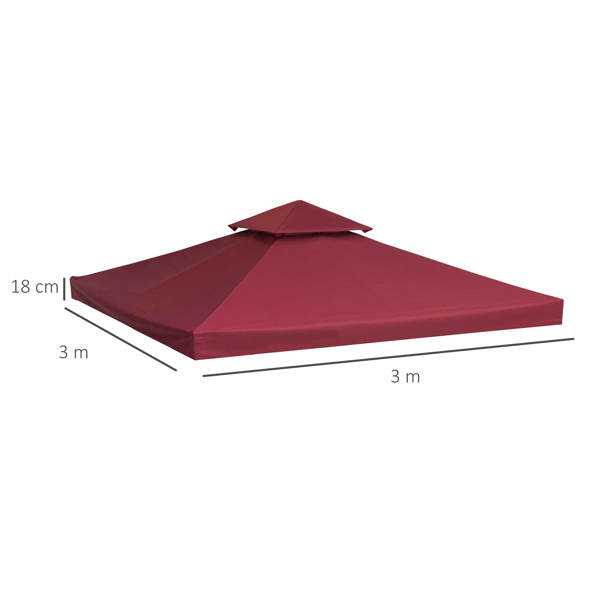 Toile de rechange pour pavillon tonnelle tente 3 x 3 m polyester haute densité 180 g/m² bordeaux