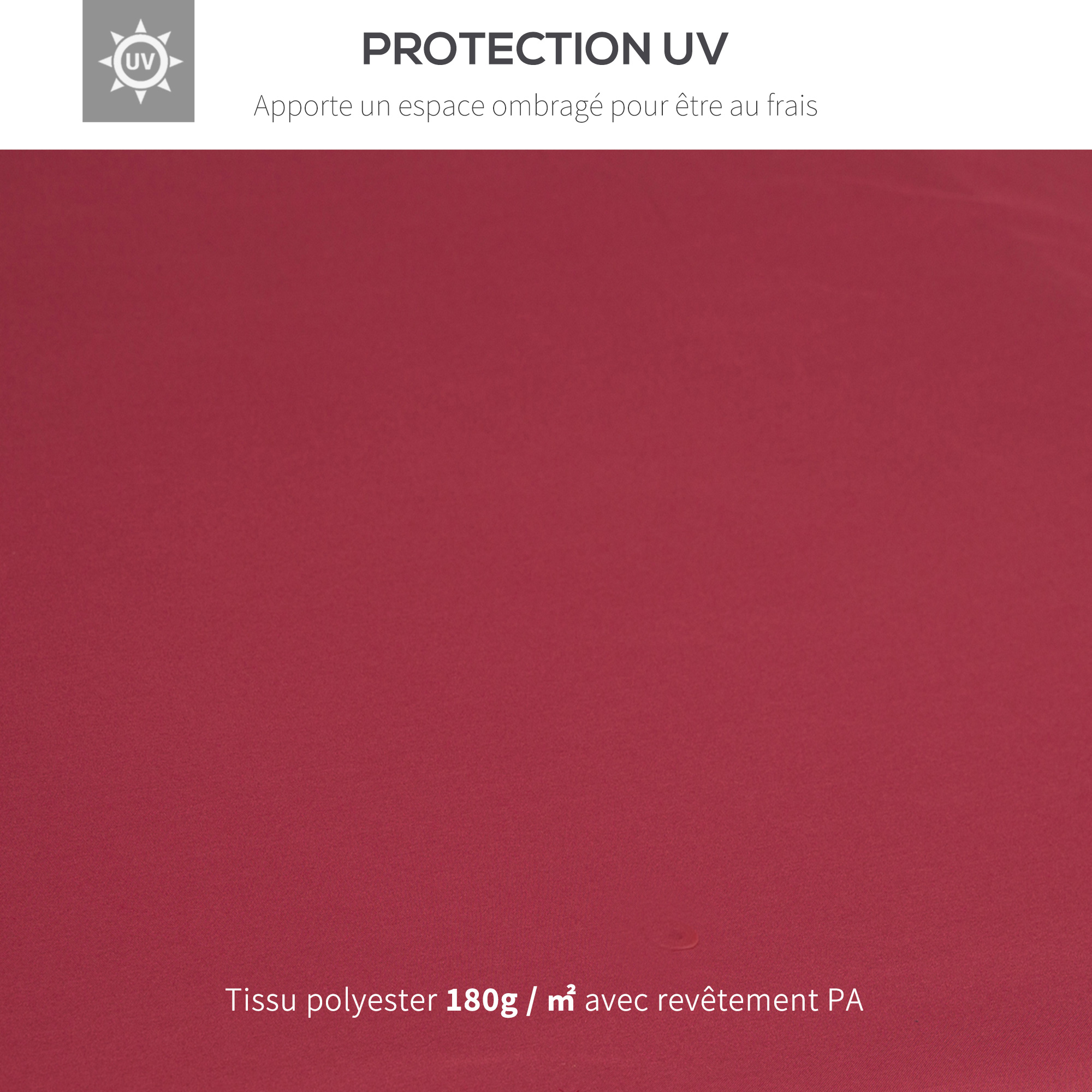 - Toile en polyester haute densité 180 g/m² avec revêtement PA anti-UV