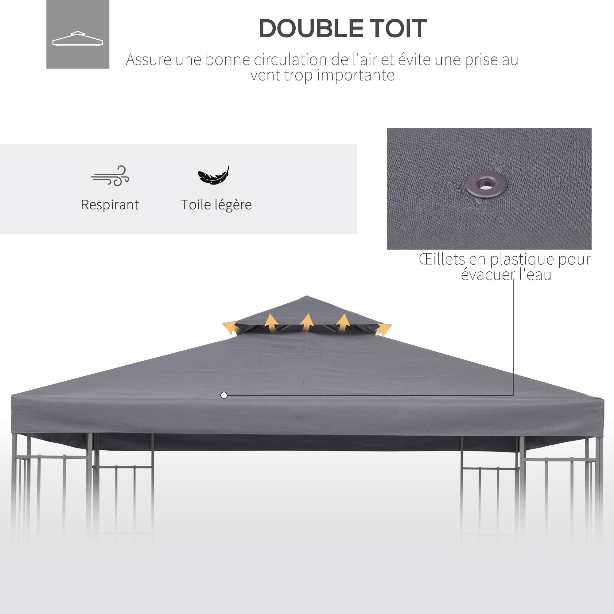 - Convient aux pavillons en métal d'une superficie de 3 x 3 m
