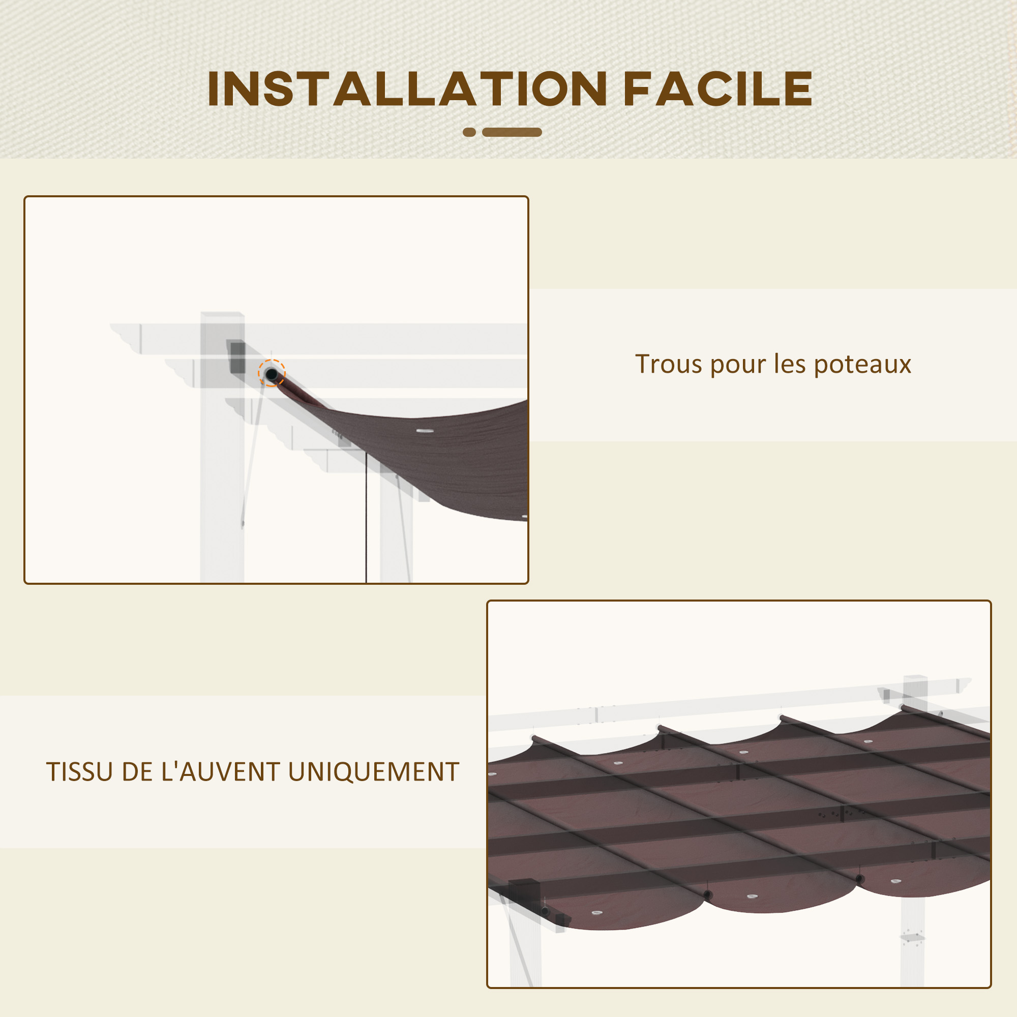 | Libellé | Toile de rechange pour pergola rétractable 3 x 3 m polyester haute densité imperméabilisé chocolat |