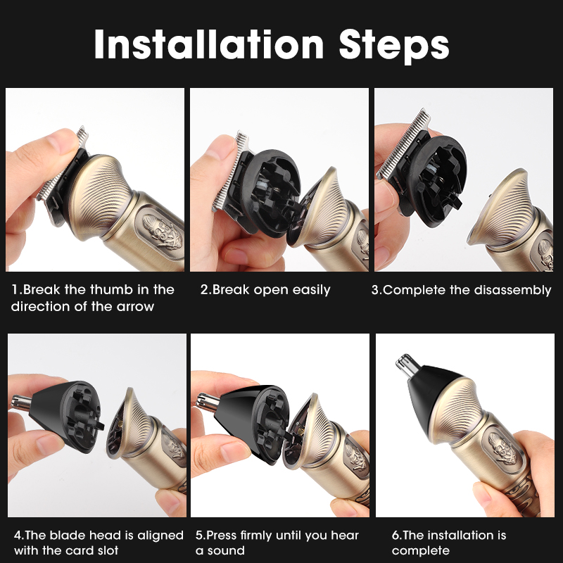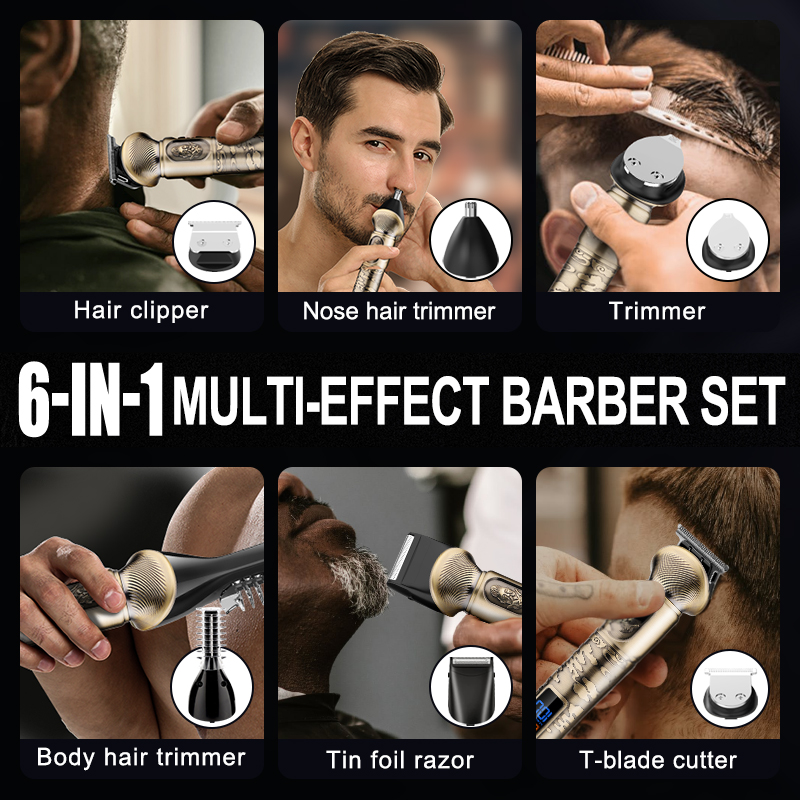 Tondeuse à cheveux tout-en-un : Ce kit de soins capillaires avec 6 têtes de tondeuse différentes, toutes conçues pour des usages spécifiques. Il peut être utilisé pour coiffer les cheveux, se raser, etc. De nombreux accessoires pratiques sont également inclus.