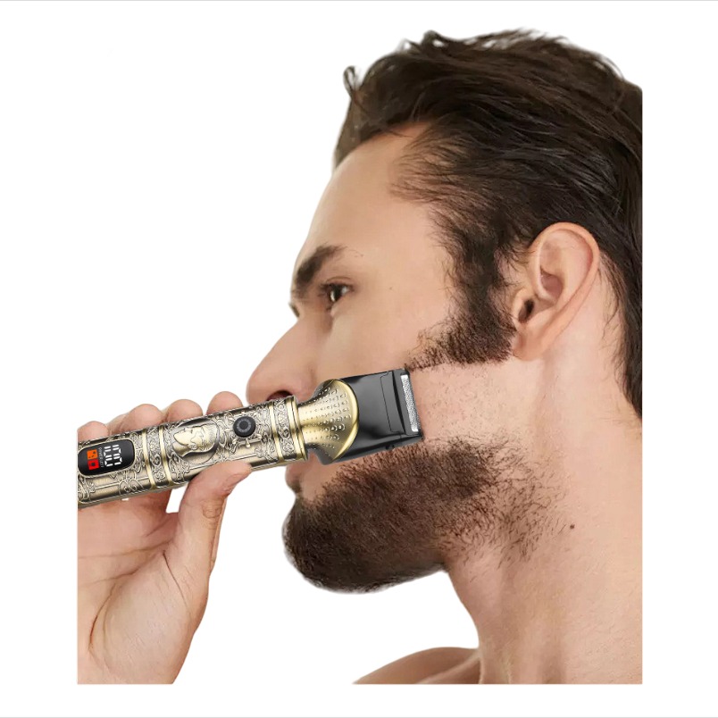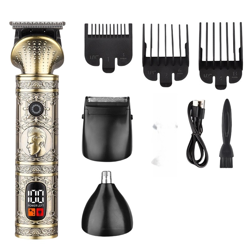 Tondeuse à Cheveux Électrique Rechargeable 3-en-1 - Or, pour Coupe, Nez et Sculptures Gold