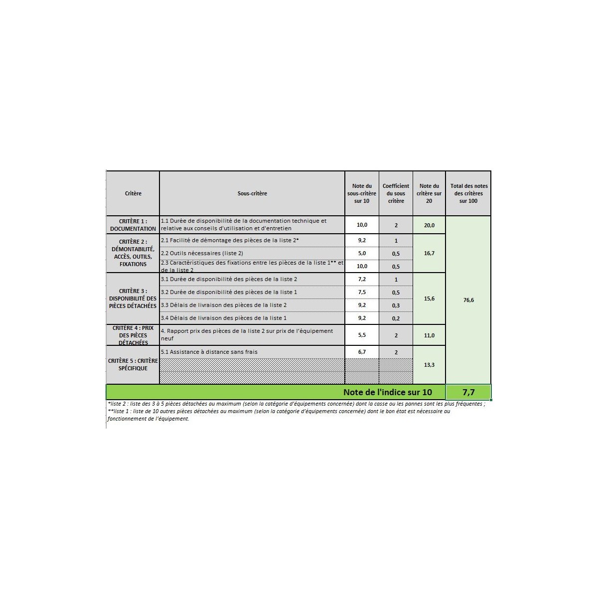 Indice de réparabilité 7,7 / 10