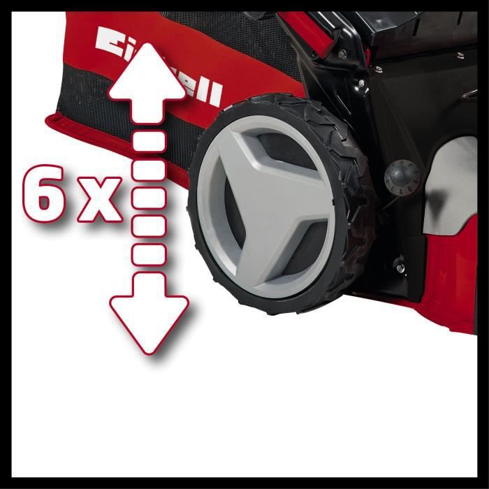 Tondeuse à gazon thermique tractée GC-PM 56/2 S HW - Moteur Einhell OHV 4 temps, refroidi par air - 173 cc - 2,8 kW - Réservoir carburant 1.600 ml - Régime 2.850 trs/min - Largeur de coupe 56 cm - Réglage centralisé de la hauteur de coupe 6 positions (25-70 mm) - Bac de ramassage de 80 l avec indicateur du niveau de remplissage et 2 poignées pour la vidange - Diam. roues Avants/Arrières 200 / 280 mm - Grandes roues arrières sur roulement à billes - Guidon ergonomique pliable et réglable en hauteur - Fonction Mulching 5 en 1 - Carter Einhell à technologie Vortex - Pare-chocs avant avec peigne - Avec grattoir pour le nettoyage en position debout - Surface conseillée 2200 m2 - Nouvelle réglementation Emission 5