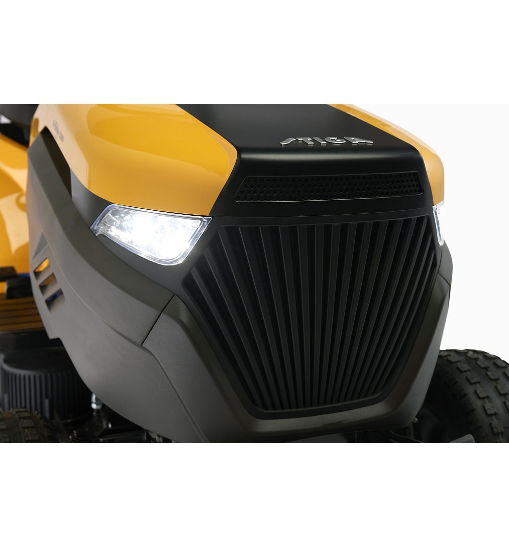 Profitez de la puissance de l'électrique avec le tracteur tondeuse à batterie Tornado 398e, alimenté par une batterie ePower intégrée de 30Ah. Idéal pour couvrir jusqu'à 3500 m² sur une seule charge, et jusqu'à 4500 m² en conditions d'économies d'énergie. Le Tornado 398e tond parfaitement, grâce à son plateau de coupe de 98 cm doté de 2 lames ailées et une éjection latérale optimisée de l'herbe. Il est également équipé d'un tableau de bord numérique qui vous aide à garder le contrôle de votre tracteur en toute simplicité. Pente maximale d'utilisation (10 %). La batterie 48V de 30Ah du Tornado 398e vous offre la synergie parfaite entre la puissance d'un tracteur tondeuse thermique, mais sans les émissions et le volume sonore associés. La puissance et la résistance de la batterie permettent de tondre jusqu'à 3 500 m² sur une seule charge. Profitez d'un confort inégalé à chaque passage. Découvrez les nouvelles caractéristiques des tracteurs STIGA : siège à haut dossier avec une forme lisse et concave et des trous d'aération pour vous garder au frais ; boulons faciles à utiliser pour ajuster votre position rapidement et facilement. Montez à bord en toute simplicité grâce au design profilé du volant et utilisez votre téléphone comme tableau de bord grâce au support spécifiquement conçu pour l'attacher au volant. Un tableau de bord facile d'utilisation disposant d'un bouton de démarrage rapide permet de garder un oeil sur l'état de charge de la batterie. Un moteur transaxe de 1,2 kW permet d'atteindre une vitesse de 9,5 km/h, tandis que deux moteurs de lames totalisant 3 kW permettent de s'affranchir des courroies, des poulies et de l'entretien coûteux. Avec le Tornado 398e, chaque séance de tonte est un plaisir, grâce à la généreuse largeur de coupe de 98 cm, réglable sur 7 hauteurs, de 25 à 80 mm.