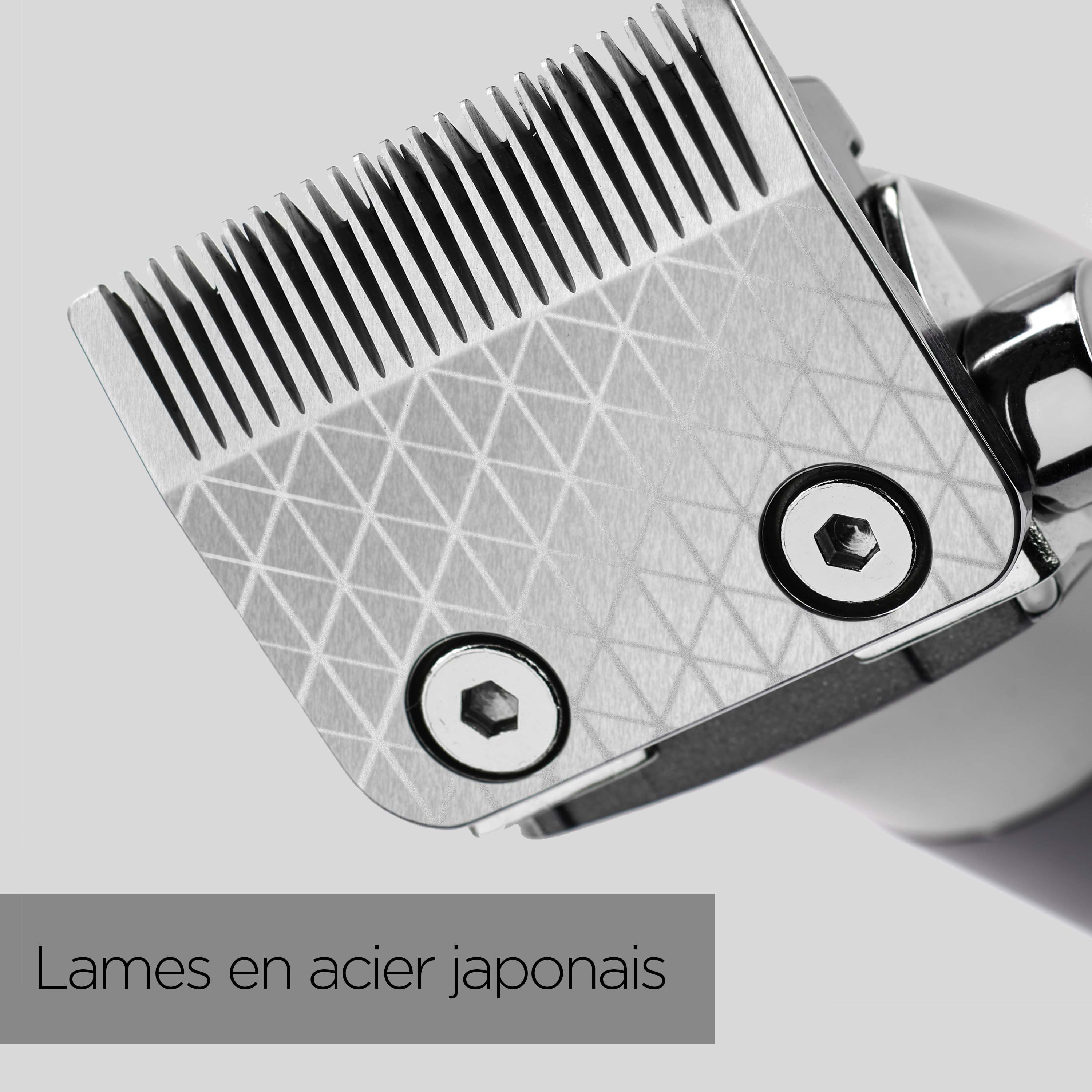Cette tondeuse cheveux de BaByliss est dotée d'un moteur High Torque puissant et ultra performant. Ses lames en acier japonais à la pointe de la technologie vous apporteront une précision optimale, un angle de coupe unique et une tonte ultra-lisse et sans effort, même sur cheveux longs et épais. Grâce à sa batterie lithium-ion, cette tondeuse BaByliss vous offre des performances exceptionnelles, jusqu'à 180 minutes d'autonomie et une puissance constante, même si le niveau de batterie est faible. Charge rapide de 3 heures. Ecran digital qui affiche le temps restant de batterie pour un plus grand confort d'utilisation. Cette tondeuse possède 55 hauteurs de coupe de 0,5 à 25 mm, pour s'adapter à tous les styles.
