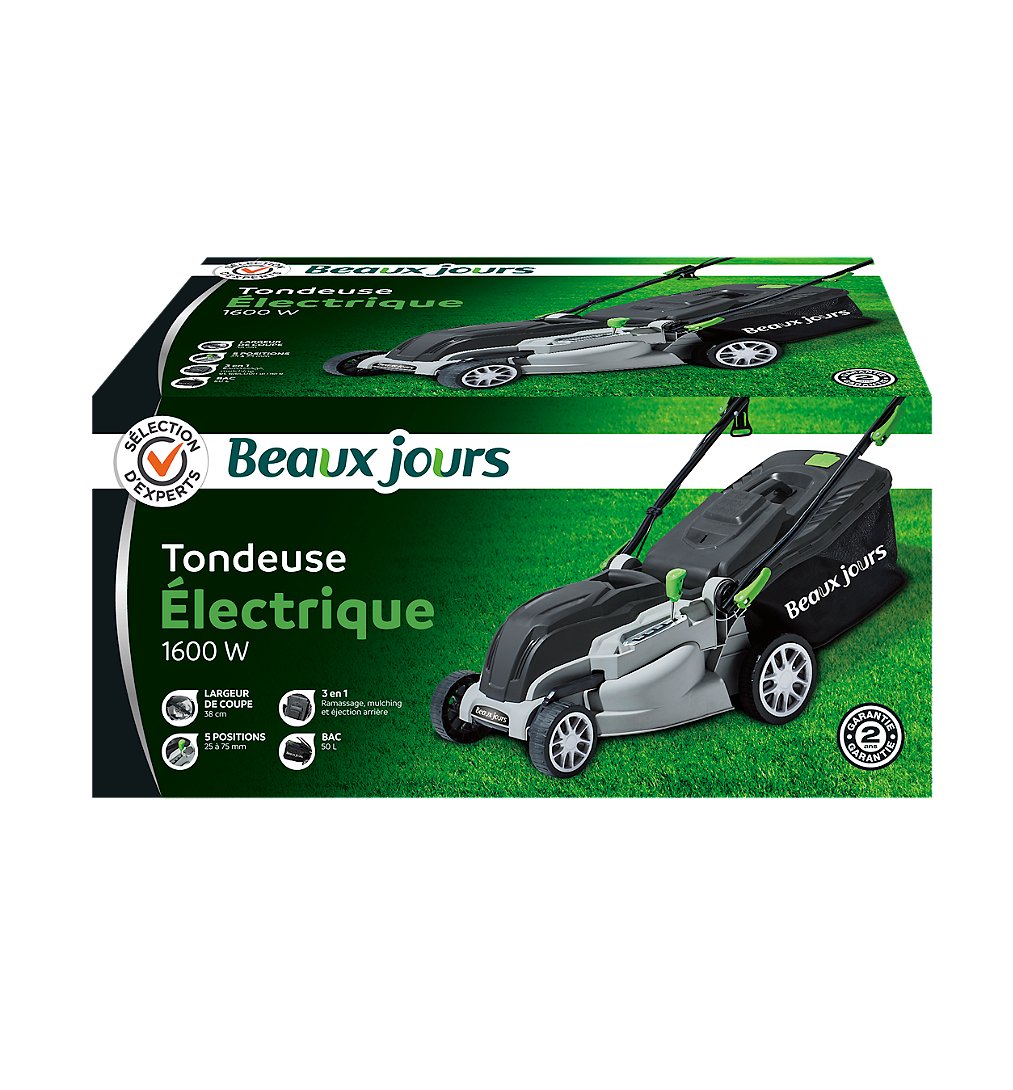 | Libellé | Tondeuse électrique 1600W 38 cm - Sélection d'Experts - Beaux Jours |