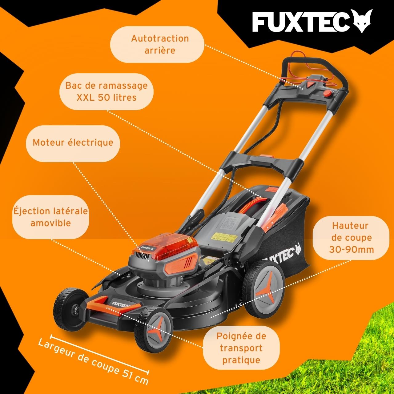 Tondeuse gazon batterie autotractée 40V (2X20V) - FUXTEC FX-E2RM51 - 51cm mulching ejection latérale 2 ba