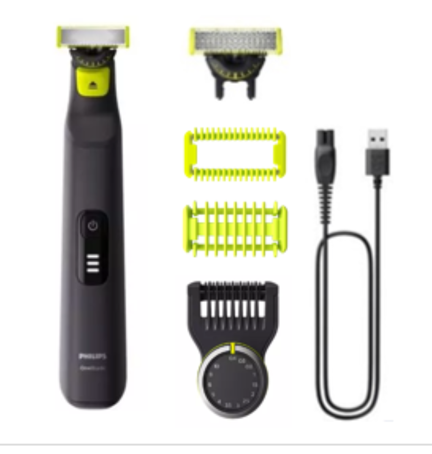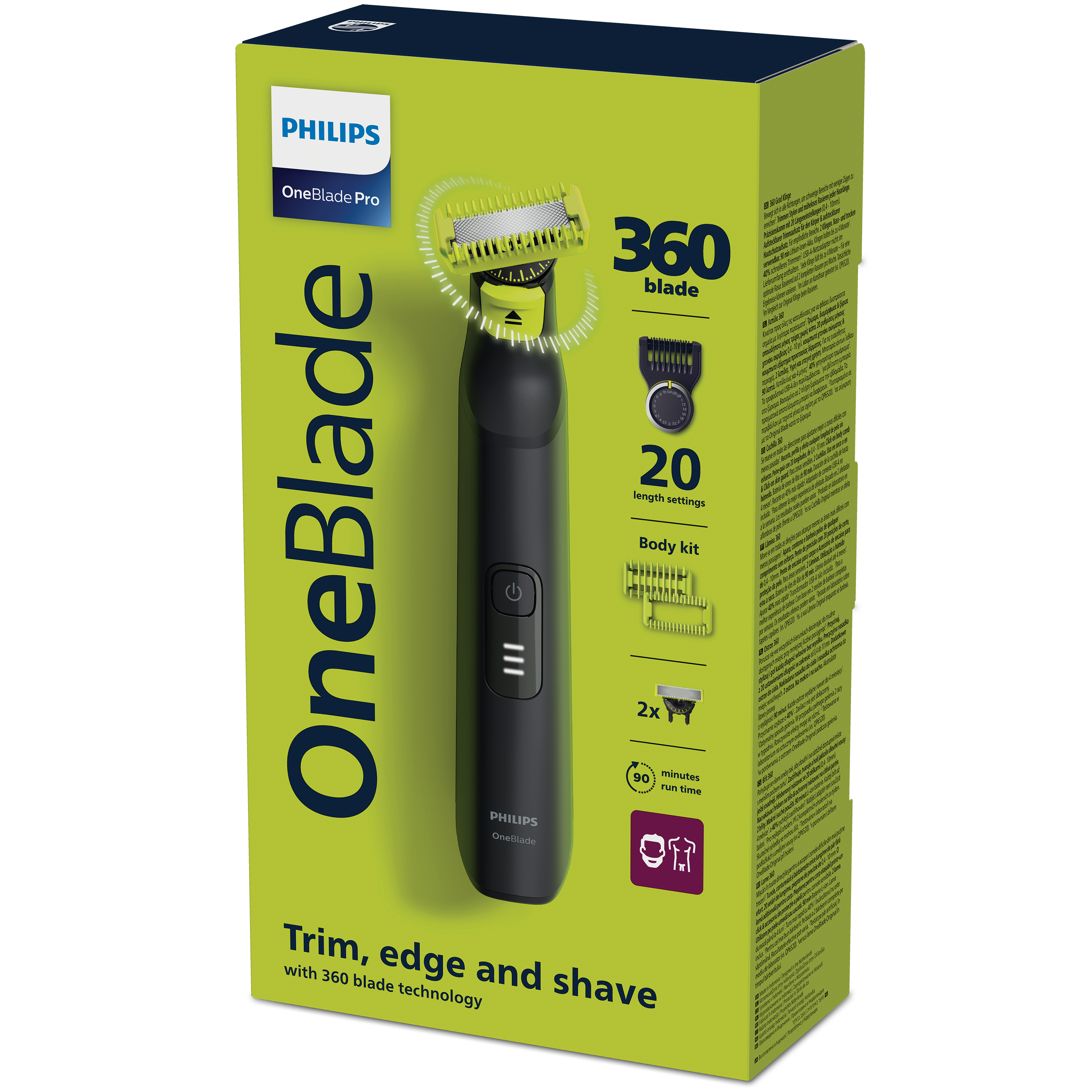 Le Philips OneBlade Pro Visage + Corps taille, stylise et rase votre corps et votre barbe, même longue. Il comprend une lame pour le visage et une lame avec un système de protection pour zones sensibles. Inutile de multiplier les appareils. Le OneBlade répond à tous vos besoins. Facile à utiliser 100 % étanche Sabot corps clipsable (3 mm) Se charge partout et à tout moment Une lame qui ne s’émousse pas facilement Batterie Li-Ion, autonomie de 90 minutes Le voyant LED indique l'état de la batterie Rasage confortable Technologie unique OneBlade Nouvelle lame 360 Rasez Système de protection clipsable pour zones sensibles Contours nets Définissez les contours Coupe uniforme