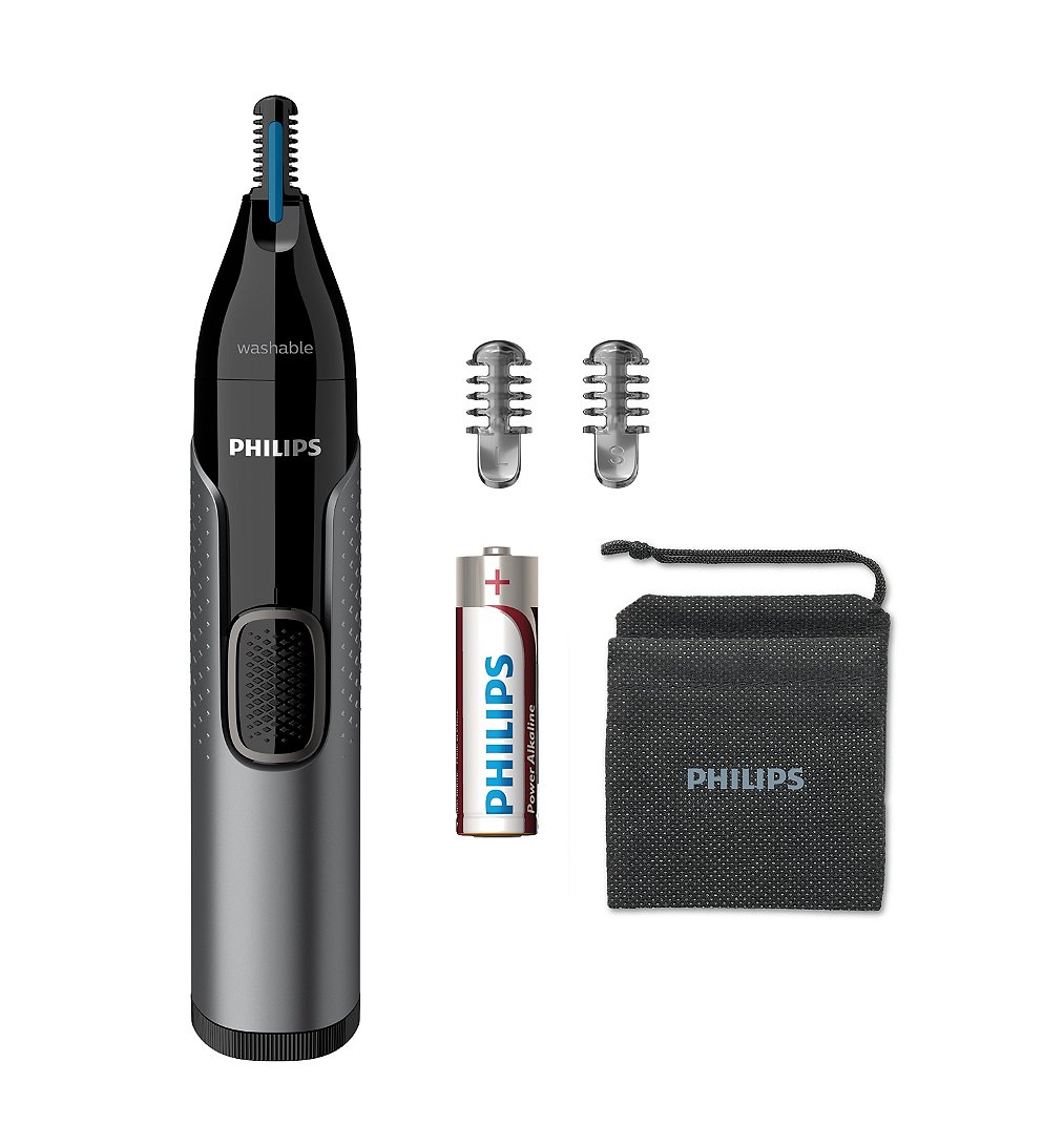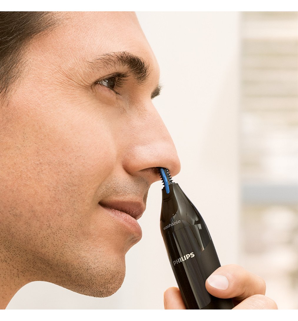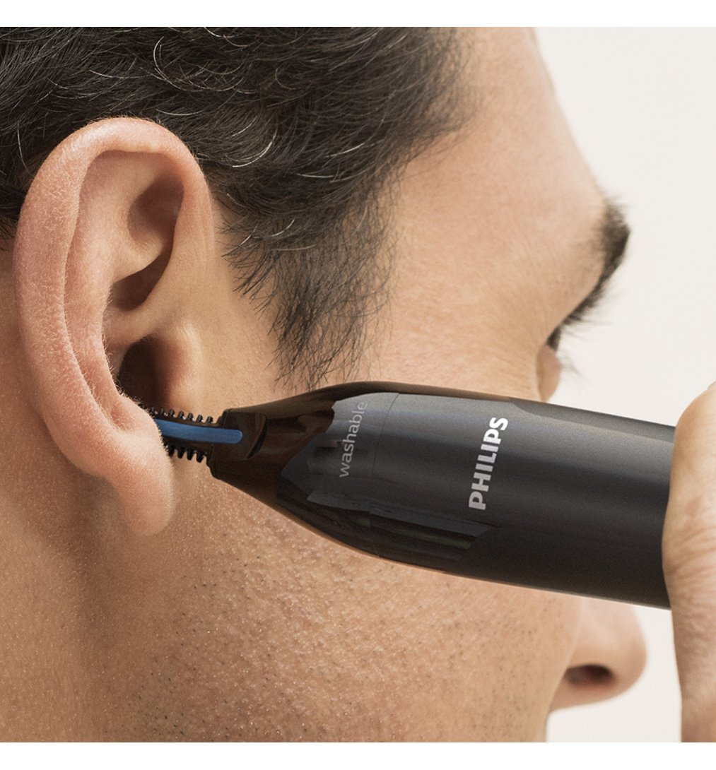 nt3650/16 - tondeuse sourcils et nez/oreilles - La tondeuse nez-oreilles NT3650/16 Philips series 3000 taille confortablement les poils de votre nez, de vos oreilles, ainsi que vos sourcils. La nouvelle technologie PrecisionTrim et le système Protective Guard ont été conçus pour offrir une coupe simple et efficace, sans tiraillement.Taillez vos poils indésirables en toute simplicité :Éliminez facilement et efficacement les poils indésirables du nez et des oreilles. Assurez-vous au préalable que vos narines sont propres et insérez-y délicatement la tondeuse à 0,5 cm maximum. Déplacez-la lentement. Lorsque vous l'utilisez dans les oreilles, veillez à ce qu'il n'y ait aucune trace de cire. Pour des sourcils taillés à une hauteur uniforme, glissez l'un des deux sabots (3 et 5 mm) dans les rainures et déplacez l'appareil dans le sens inverse de la pousse des poils en exerçant une pression légère.Système Protective Guard :Notre système Protective Guard consiste en un revêtement lisse recouvrant les lames. Il fait en sorte qu'elles ne puissent jamais entrer en contact avec votre peau et guide vos poils vers l'élément de coupe. Le système Protective Guard a été conçu pour rendre la coupe confortable et sûre, tout en coupant le plus de poils possible et en évitant les tiraillements, coupures et irritations.Technologie PrecisionTrim :Notre lame innovante est à double tranchant afin de couper tous les poils rapidement et facilement, quels que soient l'angle et le sens. Les lames sont fabriquées en acier inoxydable robuste et sont conçues pour durer.Manipulation facile :Allumez et éteignez facilement votre appareil d'une seule main. Le manche ergonomique garantit une prise en main optimale même lorsque la tondeuse est humide, pour un meilleur contrôle lors de l'utilisation.Entièrement lavable :Cette tondeuse est étanche, donc facile à nettoyer : il suffit de la rincer sous l'eau du robinet.Fonctionne avec piles :Cette tondeuse fonctionne avec une pile AA incluse dans l'emballage, pour une utilisation immédiate. Pour changer de pile, ouvrez l'appareil en tournant légèrement la partie inférieure vers la gauche. Tirez la partie inférieure vers vous pour accéder au compartiment à piles.