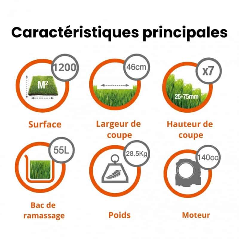 Libellé Tondeuse Proxima Yard Force XSZ46E - 46cm - 140cc - 1200 m²