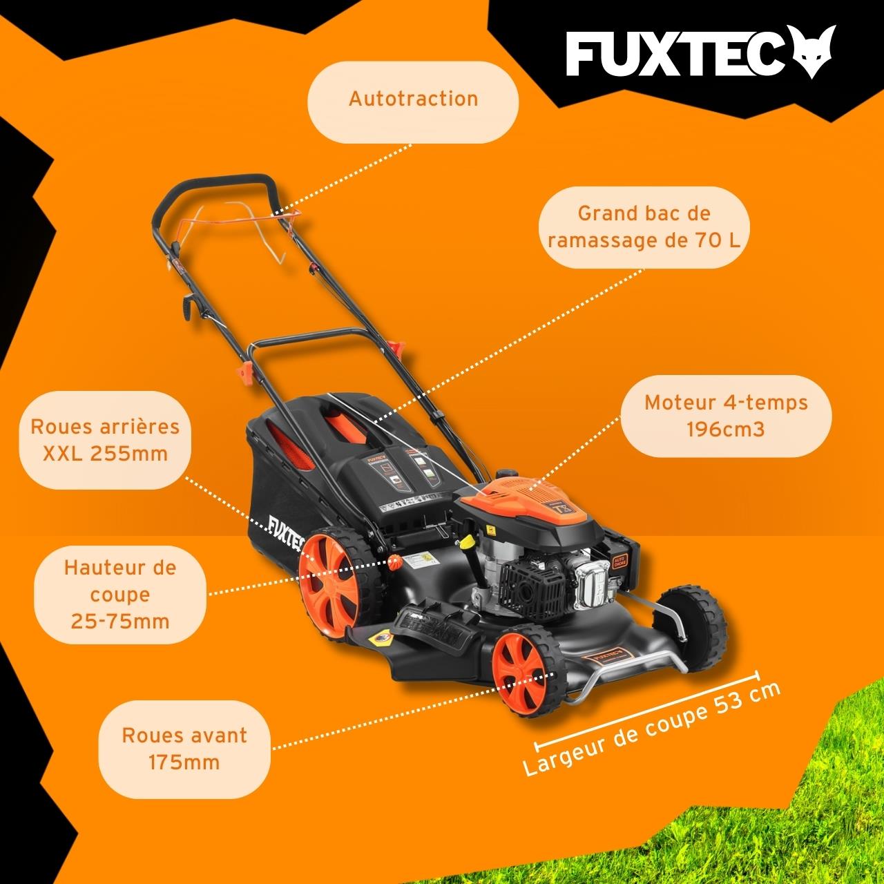 Tondeuse thermique autotractée 196cm3 53cm - FUXTEC FX-RM5396 - 6CV 70L