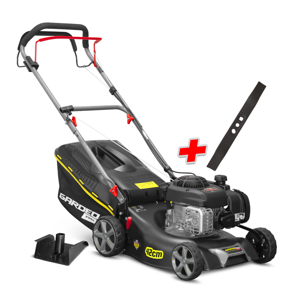 | Libellé | Tondeuse thermique autotractée avec moteur Briggs and Stratton125cc - 42cm livrée avec 2 lames + mulching - Gardeo Pro |