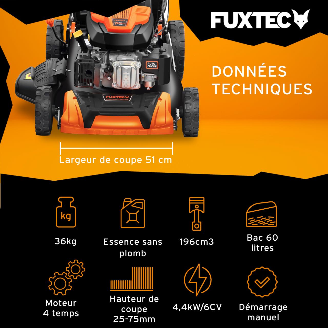 Tondeuse thermique autotractée vitesse réglable 196cm3 51cm - FUXTEC FX-RM5196PRO - 6CV 60L