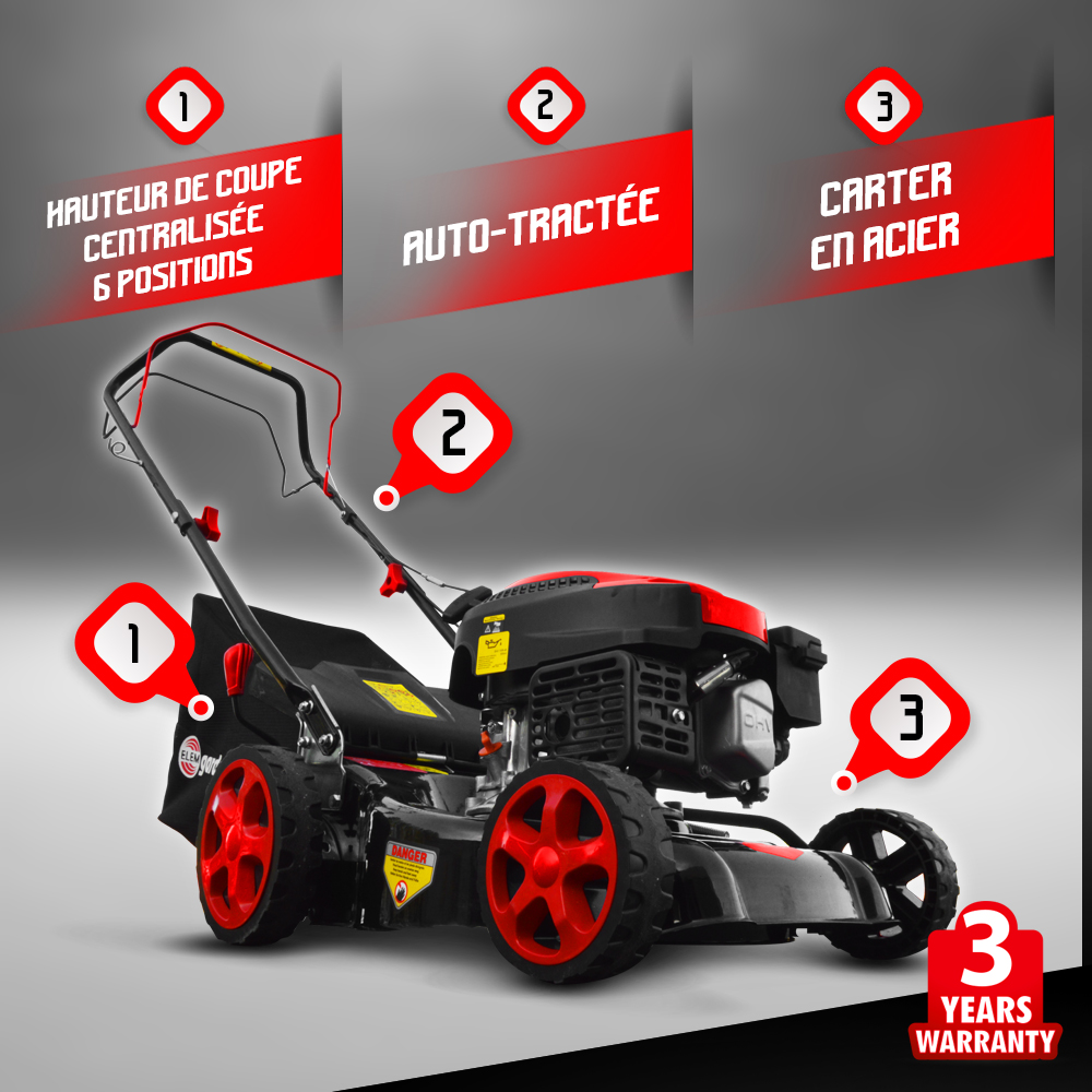 | Libellé | Tondeuse thermique tractée 127 CC - Largeur de coupe 40cm - Elem Garden |