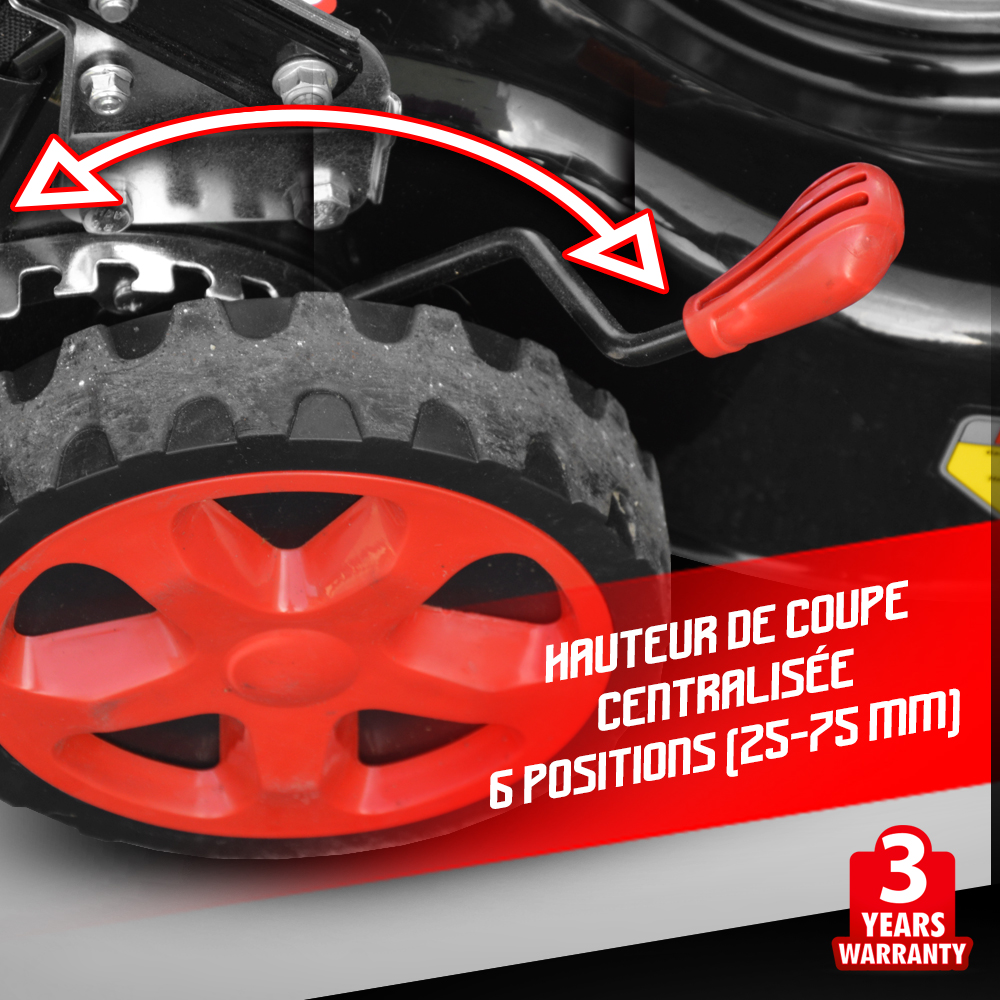 - Système hauteur de coupe : central 6 positions (25-75 mm)