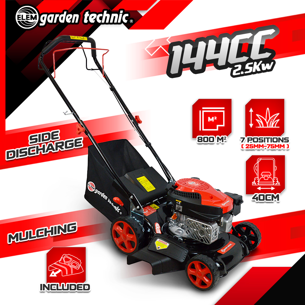 | Libellé | Tondeuse thermique tractée 144 CC - 40cm - mulching et éjection latérale |