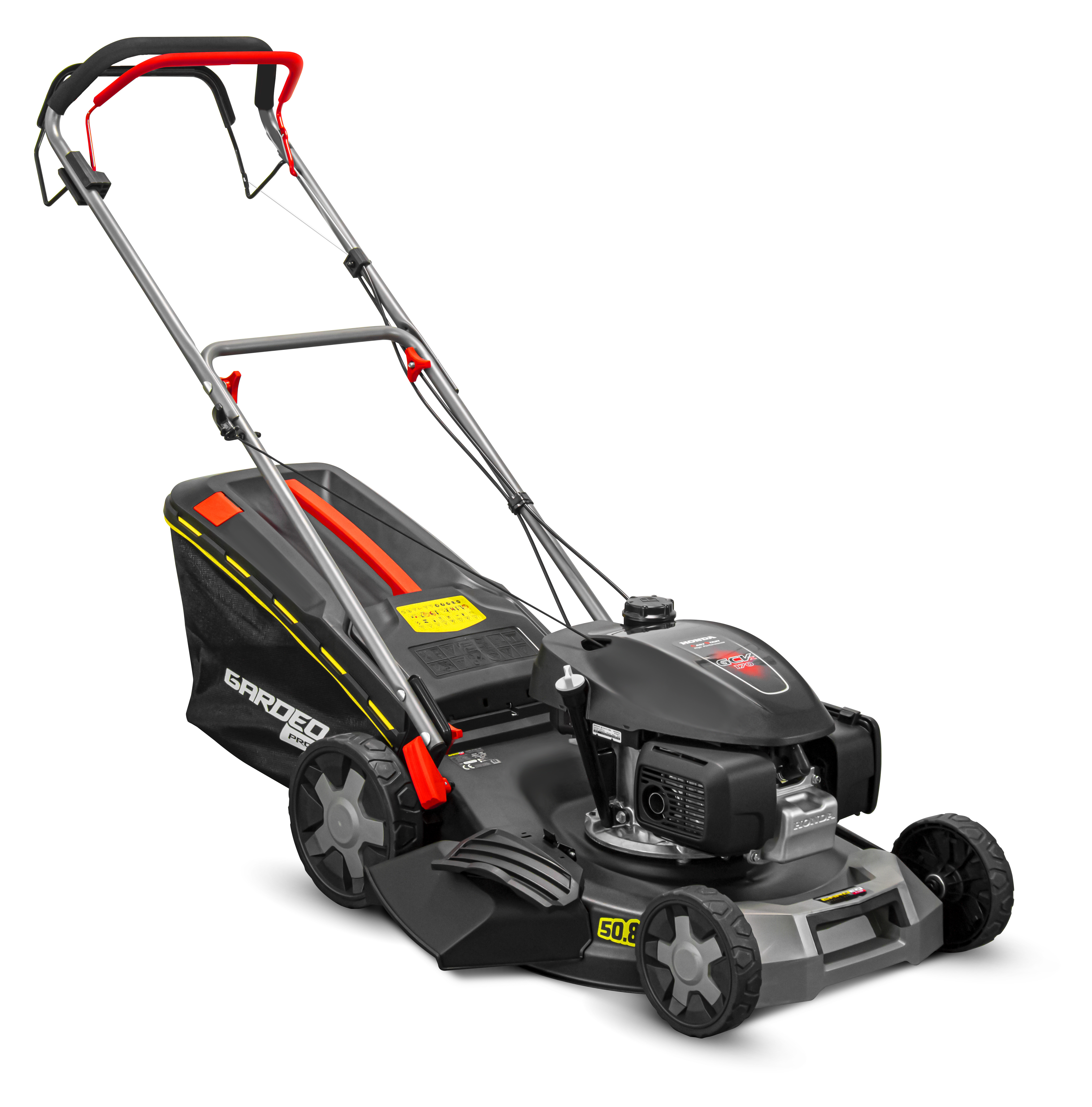 Cette tondeuse thermique autotractée équipée d'un moteur Honda GCV170 est parfaite pour les personnes à la recherche d'un outil puissant et rapide. Grâce à sa largeur de travail de 508 mm, elle est adaptée à la tonte de moyen ou grand terrain. Elle vous offrira un travail parfait grâce à son système de réglage centralisé sur 7 positions permettant d'adapter facilement la hauteur de coupe. Munie d'une poignée « soft grip », elle vous offre un confort et une prise en main irréprochable. Elle possède également une poignée à l'avant pour faciliter le transport. Cette tondeuse à essence dispose d'un carter en acier résistant aux chocs. Elle est équipée d'un bac récolteur souple avec hard top renforcé de 60 litres afin de vous éviter un grand nombre de trajets jusqu'au compost. Cette tondeuse dispose des fonctions suivantes : Fonction Mulching (Cette fonction vous sera utile si vous souhaitez tondre et fertiliser votre jardin en même temps. Cela améliorera l'aspect ainsi que la santé de votre gazon.) - Éjection arrière - Éjection latérale - Nettoyage du carter intégré - moteur Easy start (démarrage simple et facile sans avoir à amorcer le moteur). Garantie : 5 ans Caractéristiques : - Moteur Honda GCV 170 easy start (démarrage simple et facile sans avoir à amorcer le moteur). - Puissance: 167 CC / 3.4Kw - Capacité du réservoir essence: 1 L (95/98 oct sans plomb) - Capacité du réservoir huile: 0,41 L (SAE 20W-40) - Largeur de travail : 508 mm - Auto-tractée - Système hauteur de coupe : central 7 positions (25 - 75 mm) - Type de carter : Acier - Capacité du bac : 60 L (bac souple avec hard top renforcé) - Roues avant : 170mm - Roues arrière : 225mm - Éjection arrière - Fonction mulching - Éjection latérale - Poignée soft grip - Système de nettoyage du carter intégré - Poignée à l'avant de la tondeuse pour un transport aisé