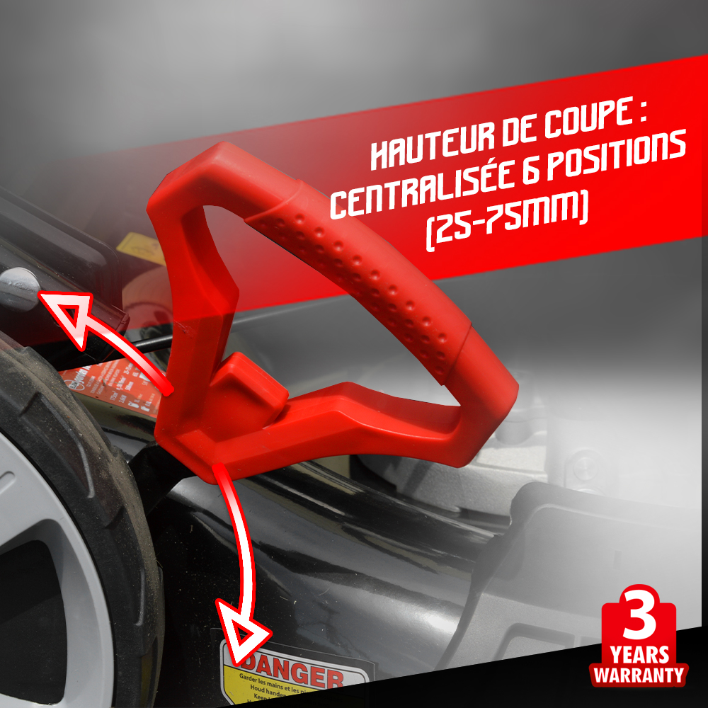 Système hauteur de coupe : central 6 positions (25-75mm)