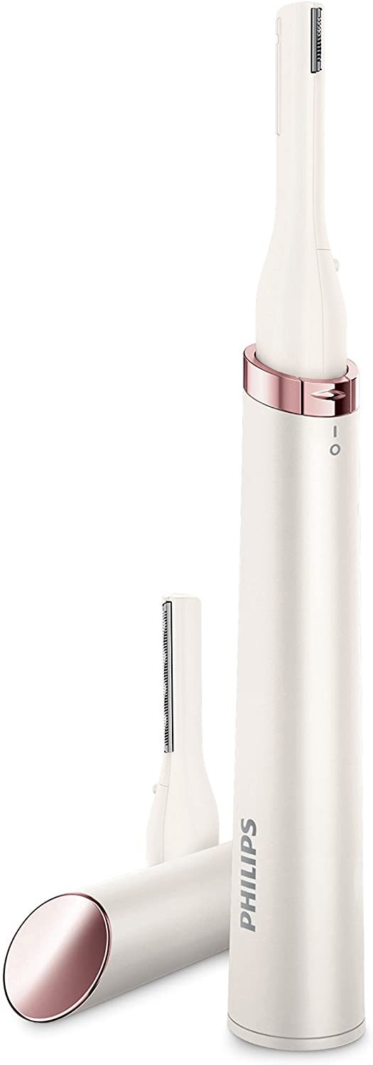 Tête de tondeuse 8 mm pour tailler facilement les poils sur le visage Sabot pour sourcils de 2 et 4 mm, pour une longueur uniforme Tête de tondeuse 26 mm pour tailler facilement les poils sur toutes les petites zones du corps Pince à épiler, pour une épilation de précision Suffisamment compacte pour vous accompagner partout