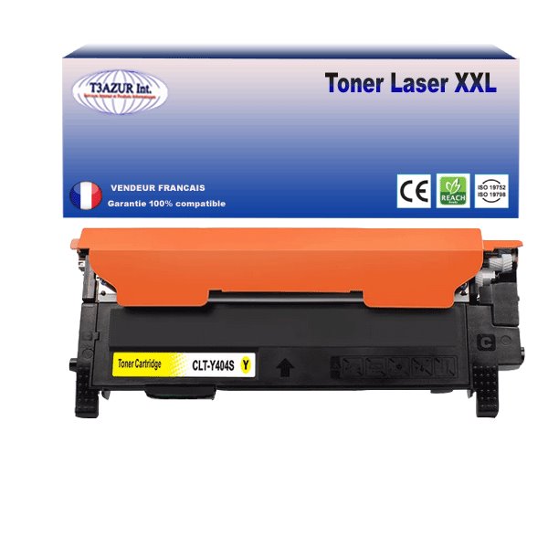 Remplacent les cartouches Samsung CLT-Y404 Jaune - Capacité: 1 000 pages avec un rendement de 5% , repondent à toutes les normes européennes ISO 9001/14001, STMC, CE, ROHS . Encre de haute qualité qui garantie une excellence qualité d'impression - Marque T3AZUR
