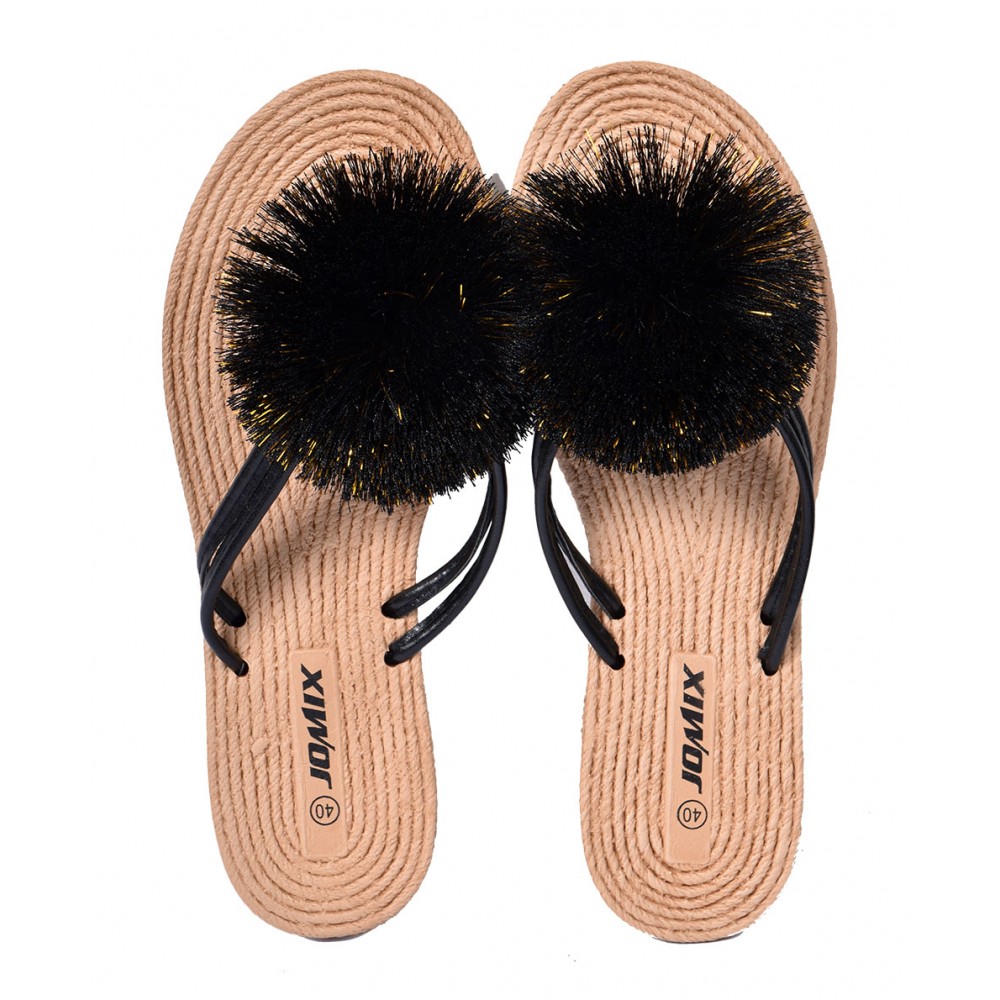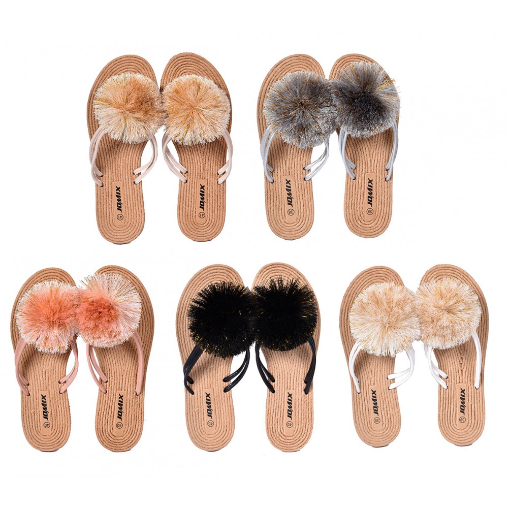 Tongs PREMIUM pour Femme avec Semelle Cordée et Pompon Fantaisie