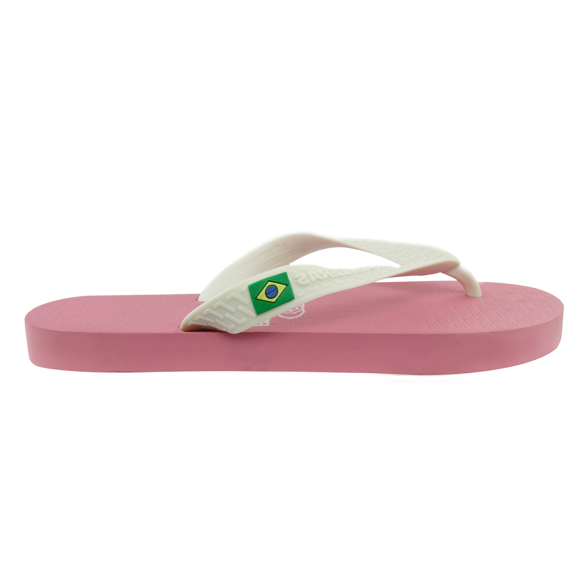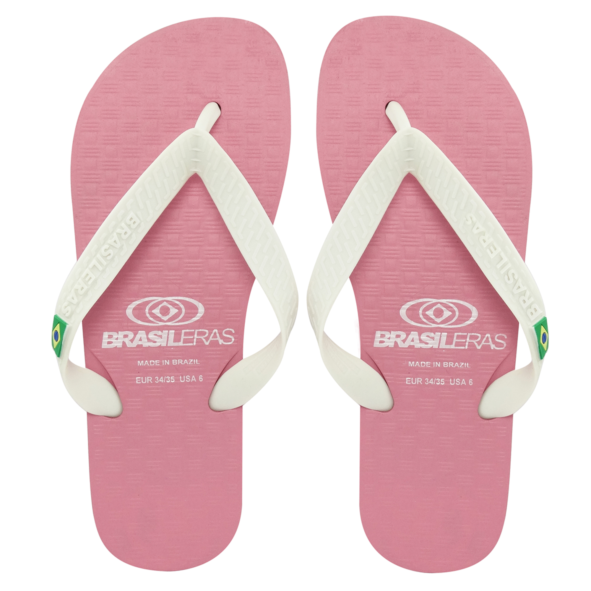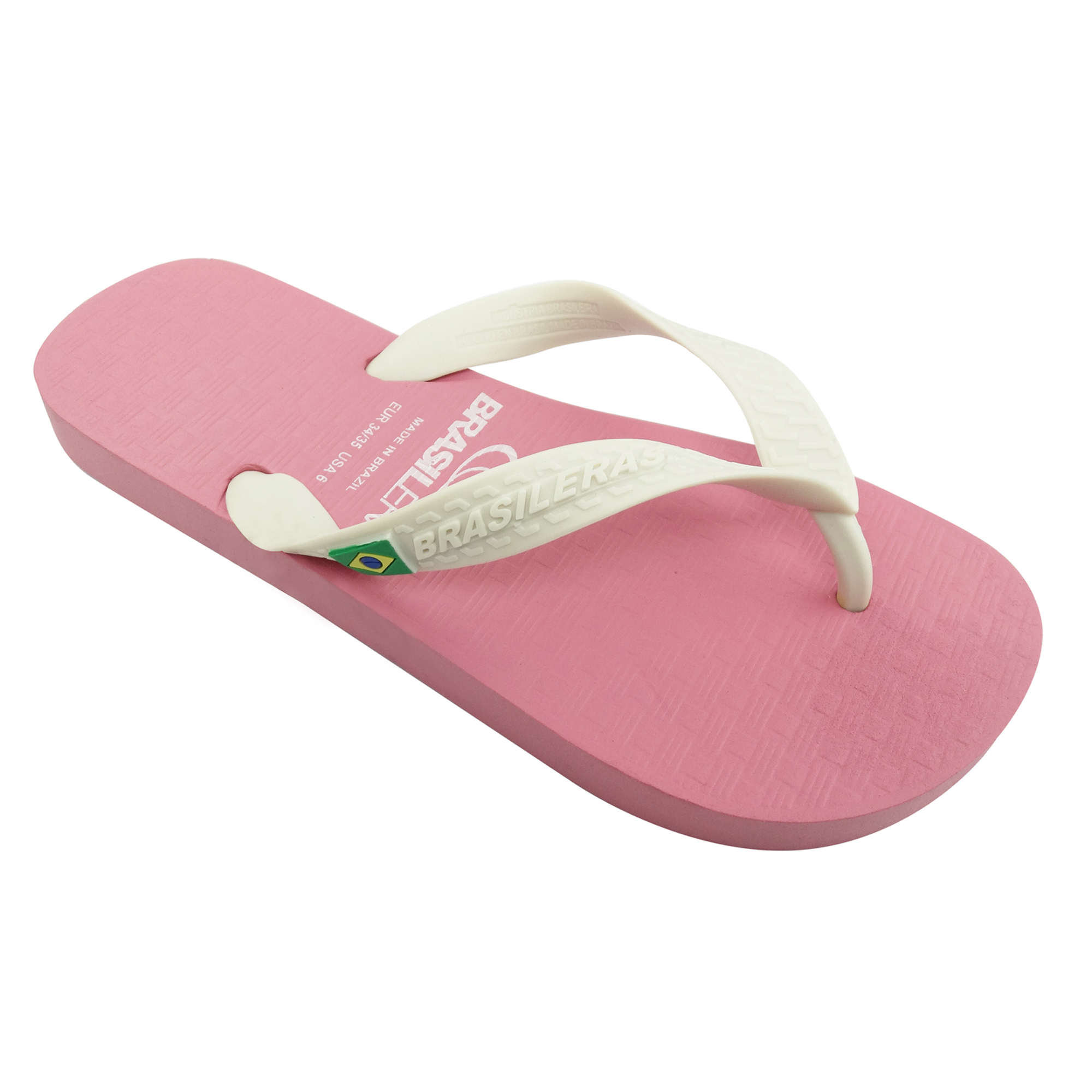 Tongs de plage brasileras unisexes roses et blanches avec semelles en caoutchouc antidérapantes